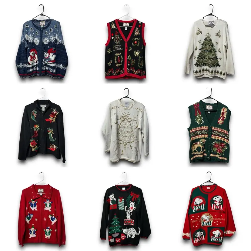 Lot of 9 Vintage Christmas “Ugly” Sweaters (Tiara International, Heirloom Collectibles)