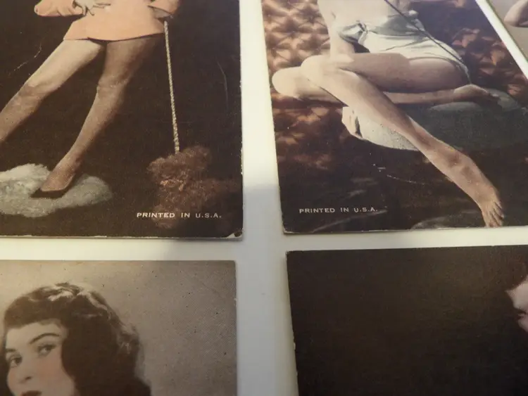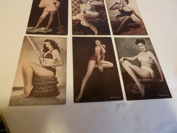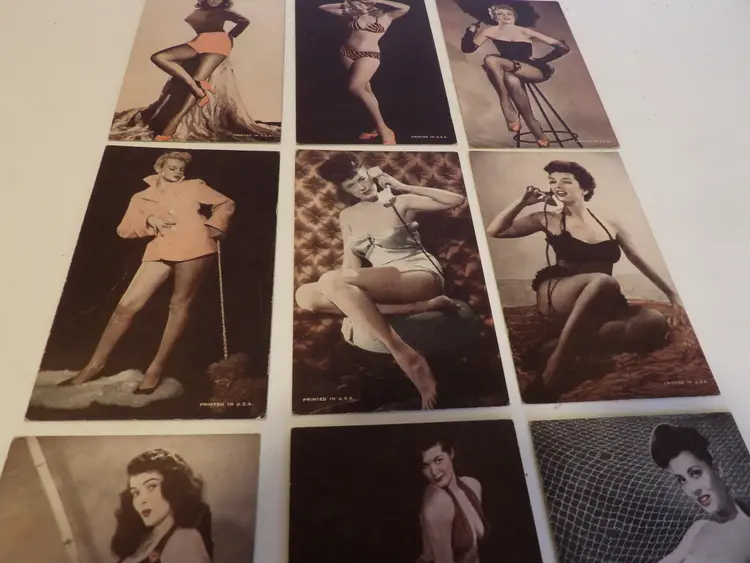 This is a lot of 9 vintage cardboard, risque, pin up arcade cards. There is very minimal damage, and this is a great set. (Madhatter)