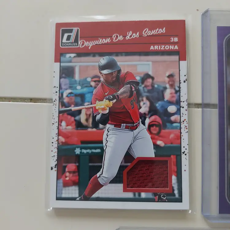 Deyvison De Los Santos jersey card. Slade Cecconi #186/275. Gabriel Moreno #233/325. Zac Gallen #140/2021. Chris Owings #631/2015.
