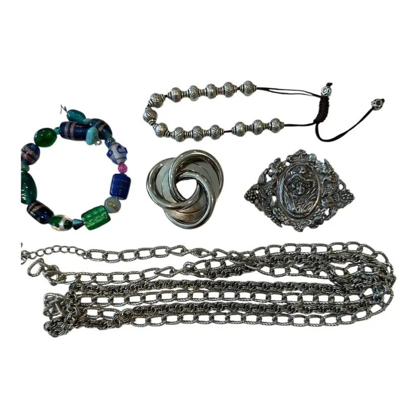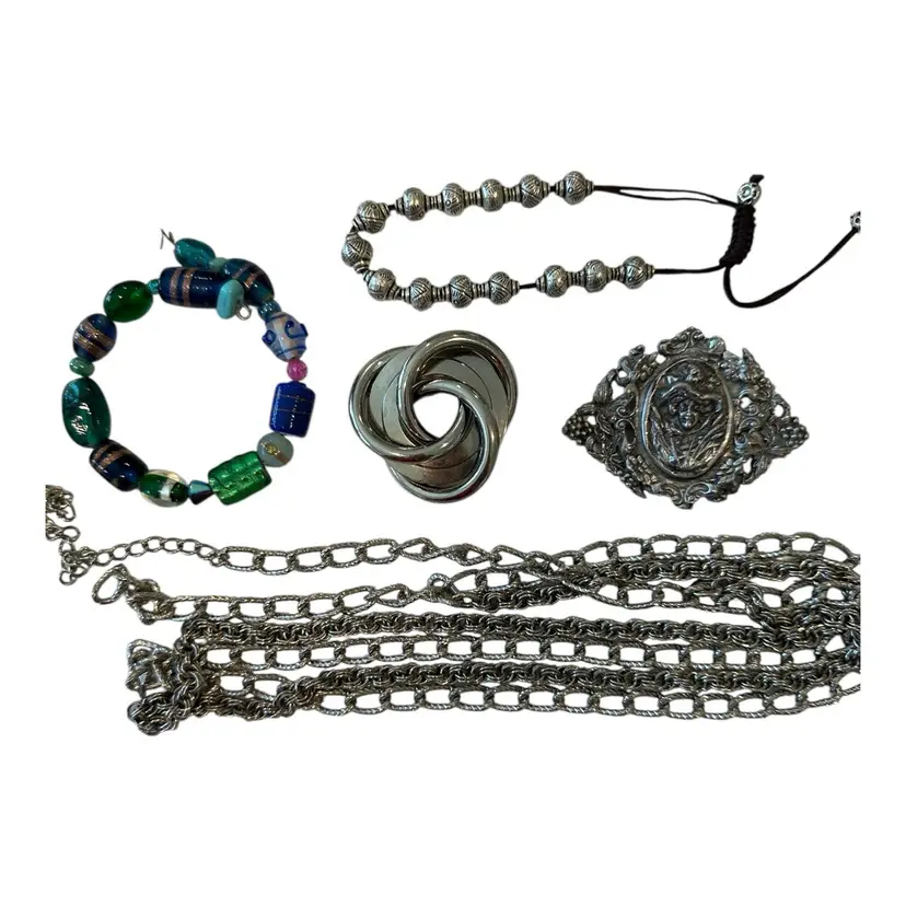 Pins are 3 inches and 2 inches in diameter. Chain is without clasp and can be used for any purpose and is a double style