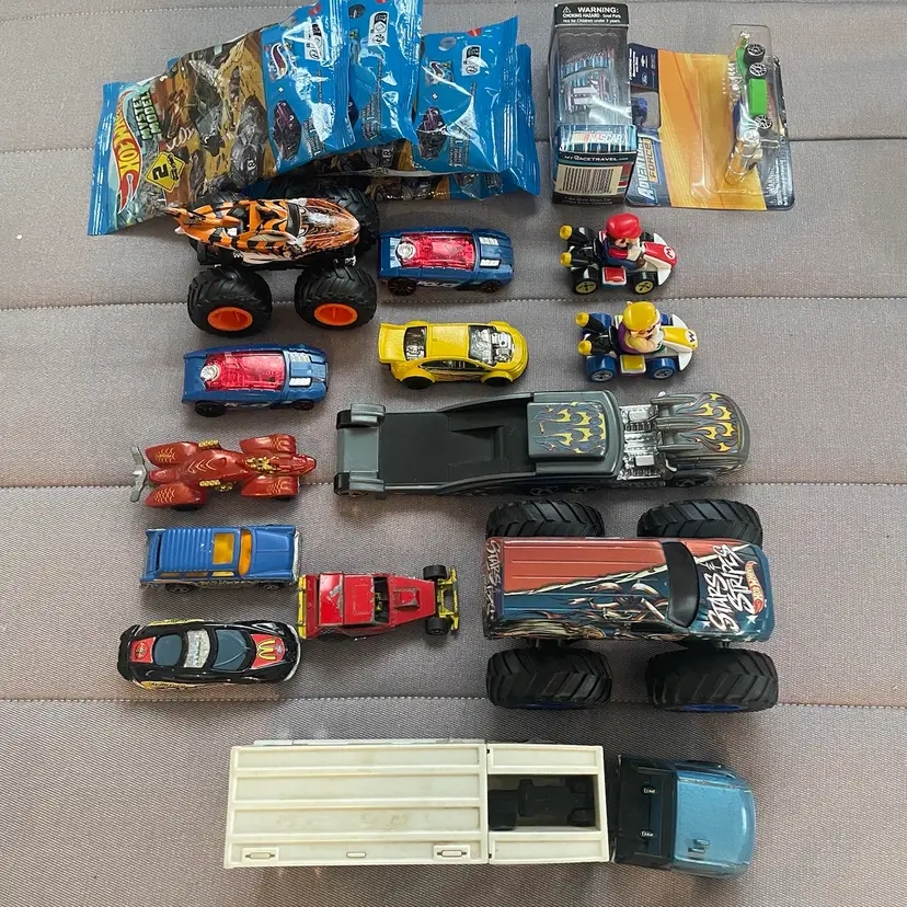 19 total cars. Majority are hot wheels. some new and some loose. condition varies. view all photos.