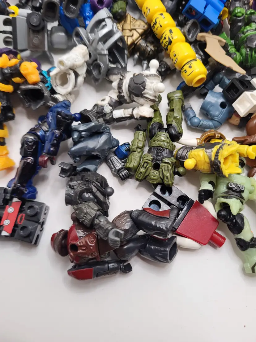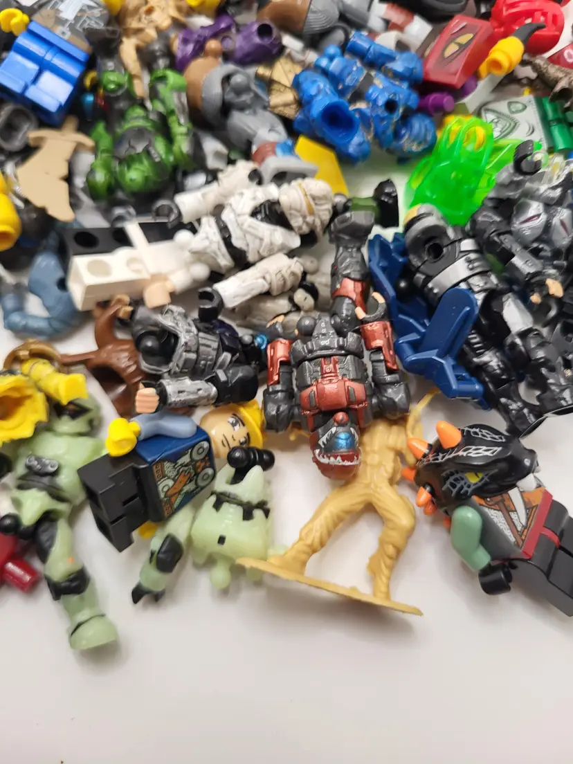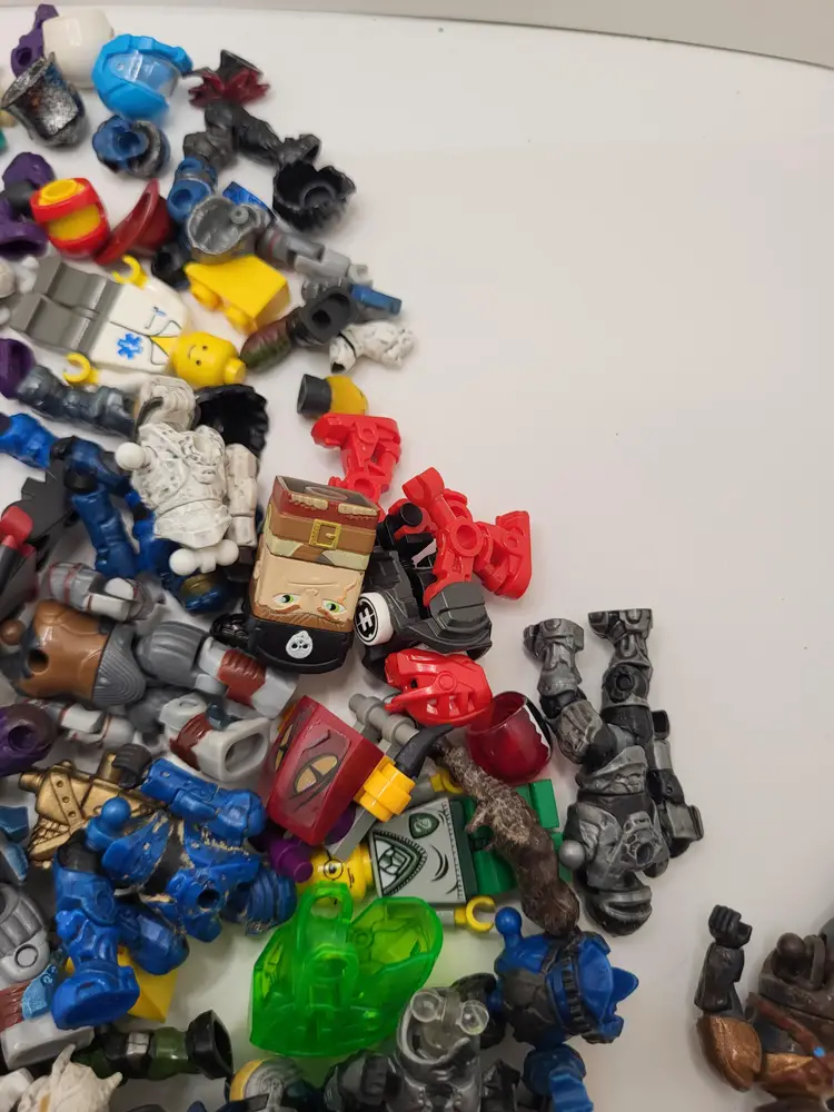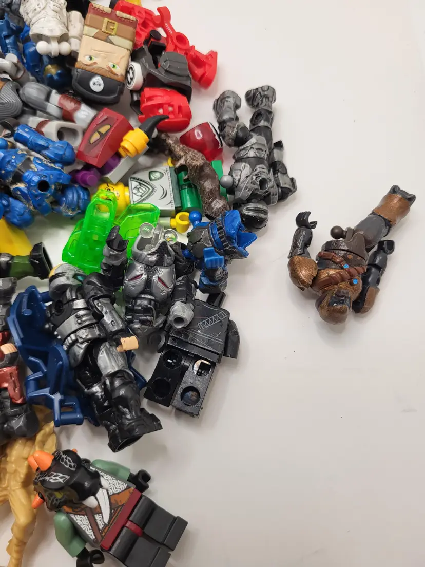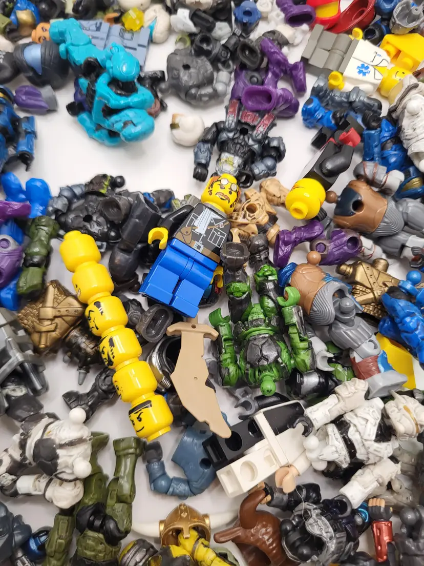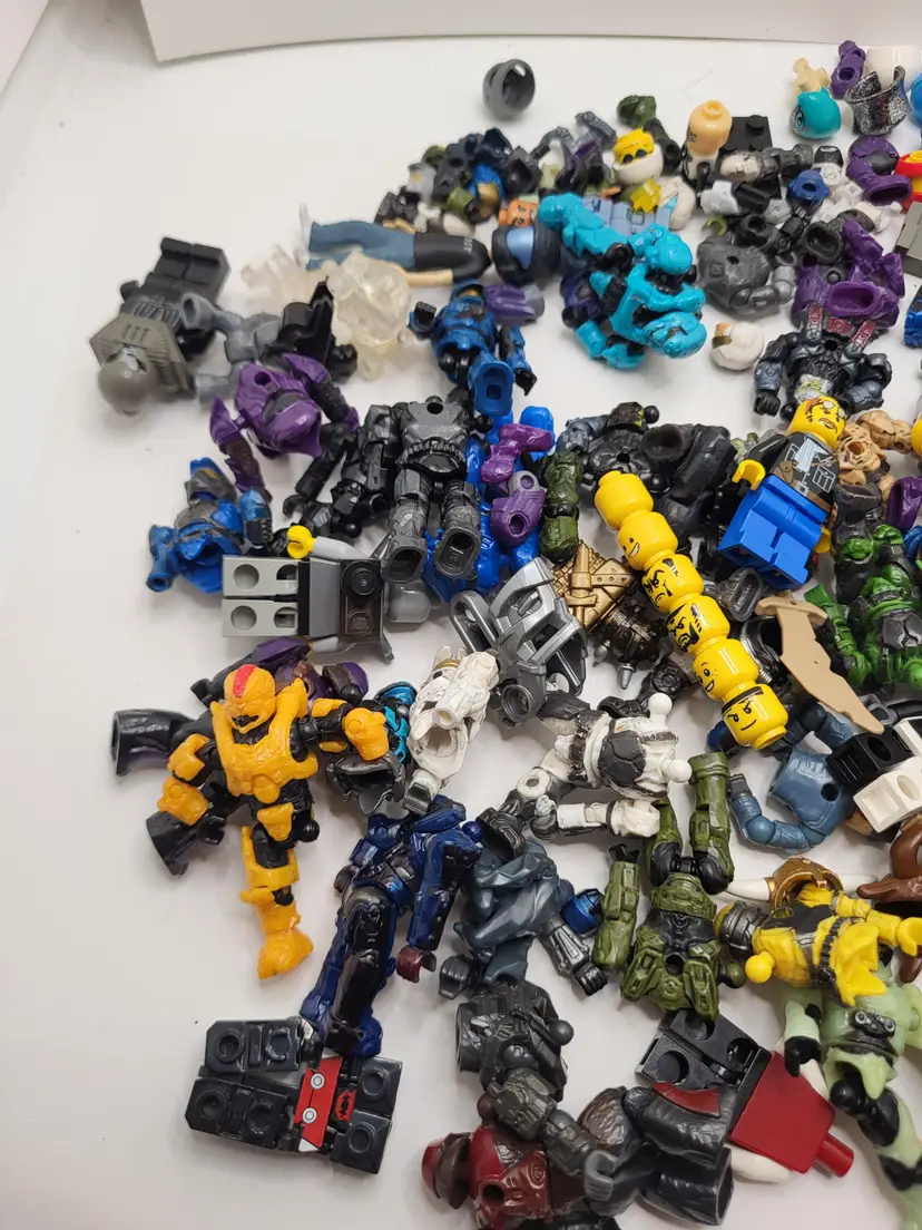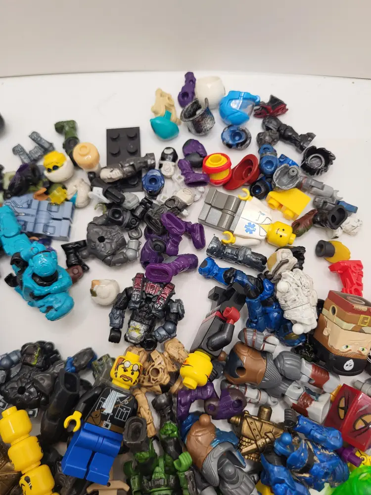 Lot of lego minifigs. All of them are missing pieces but if you look at pictures there is a ton of parts. I never tried to put together