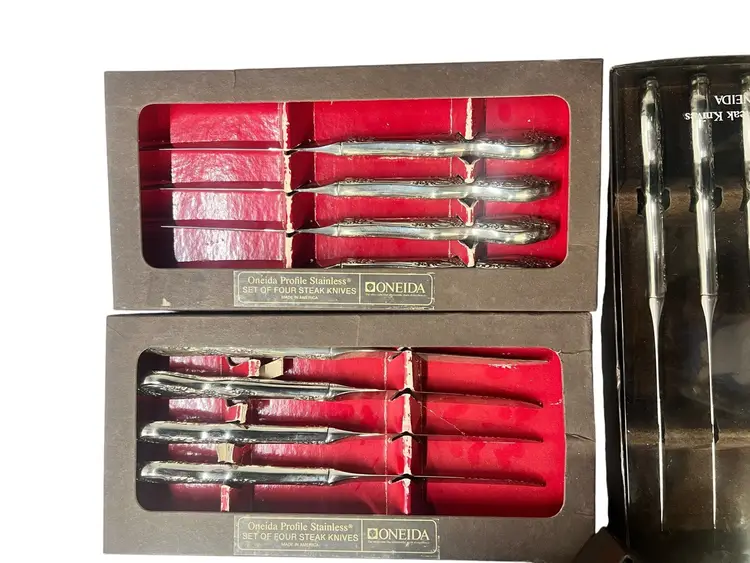 3 sets of 4 iced tea spoons 3 sets of 4 steak knives Galveston made in USA