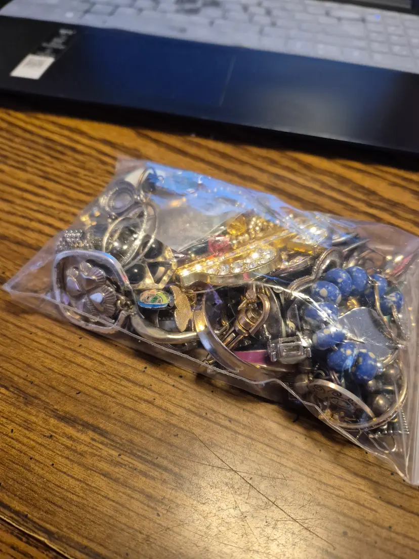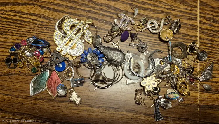 CRAFT bag of single earrings, for harvest, repair or craft. Also includes 2 key chains, and a $ pendant. Some stones missing.