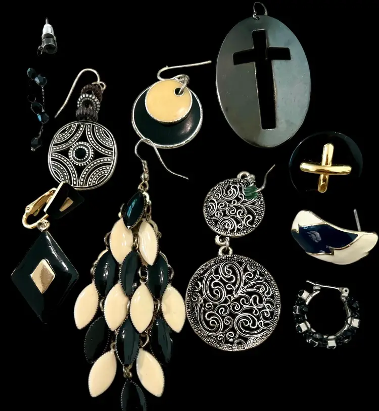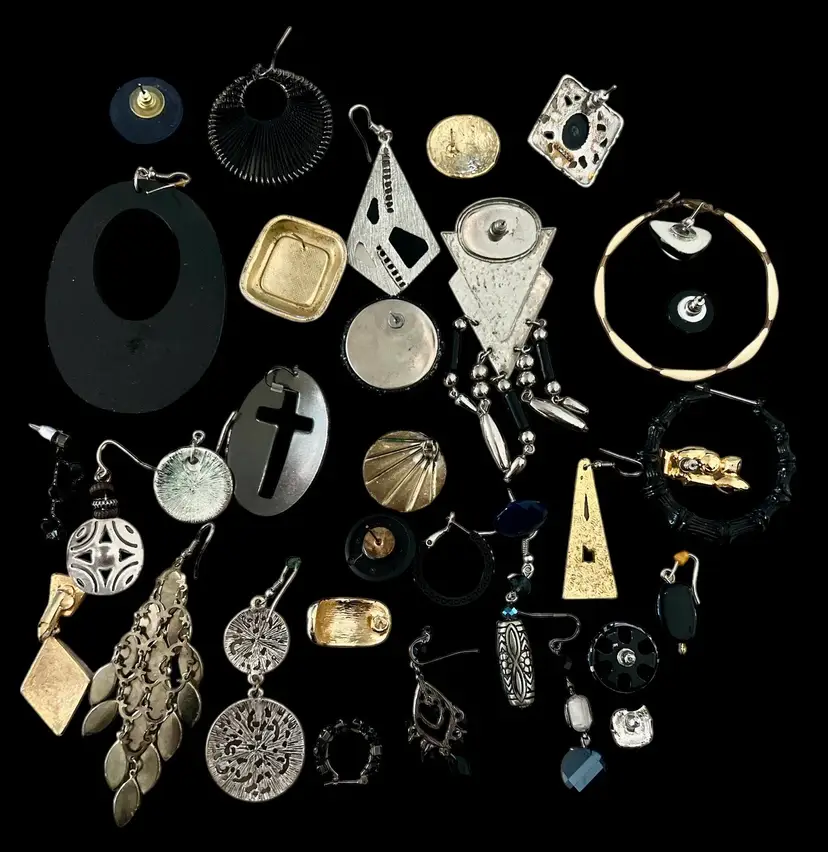 See PHOTOS! Earrings might not have earring backs. Jewelry might have rubs, tarnished metal, missing stones.They may not be cleaned.