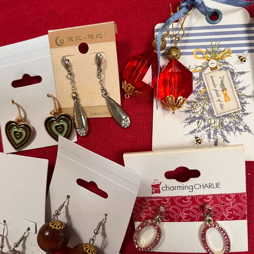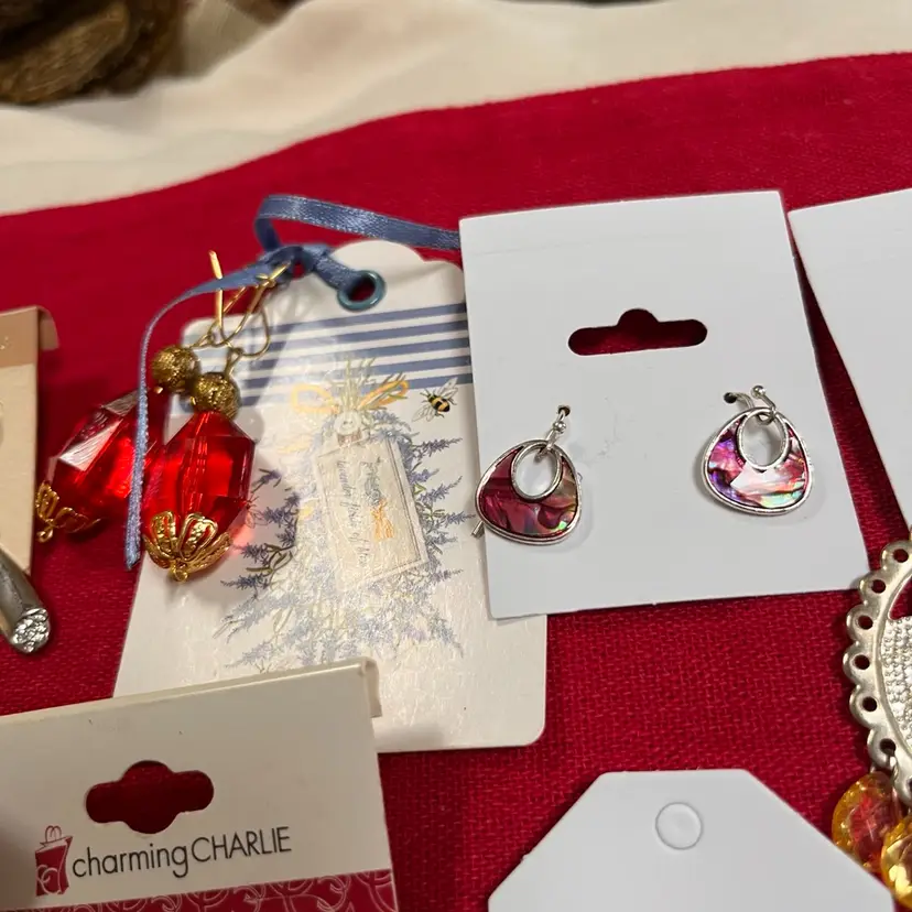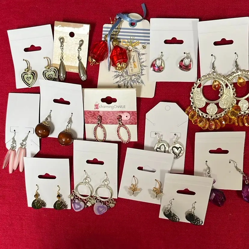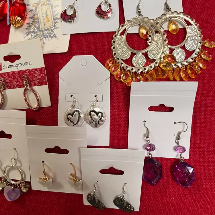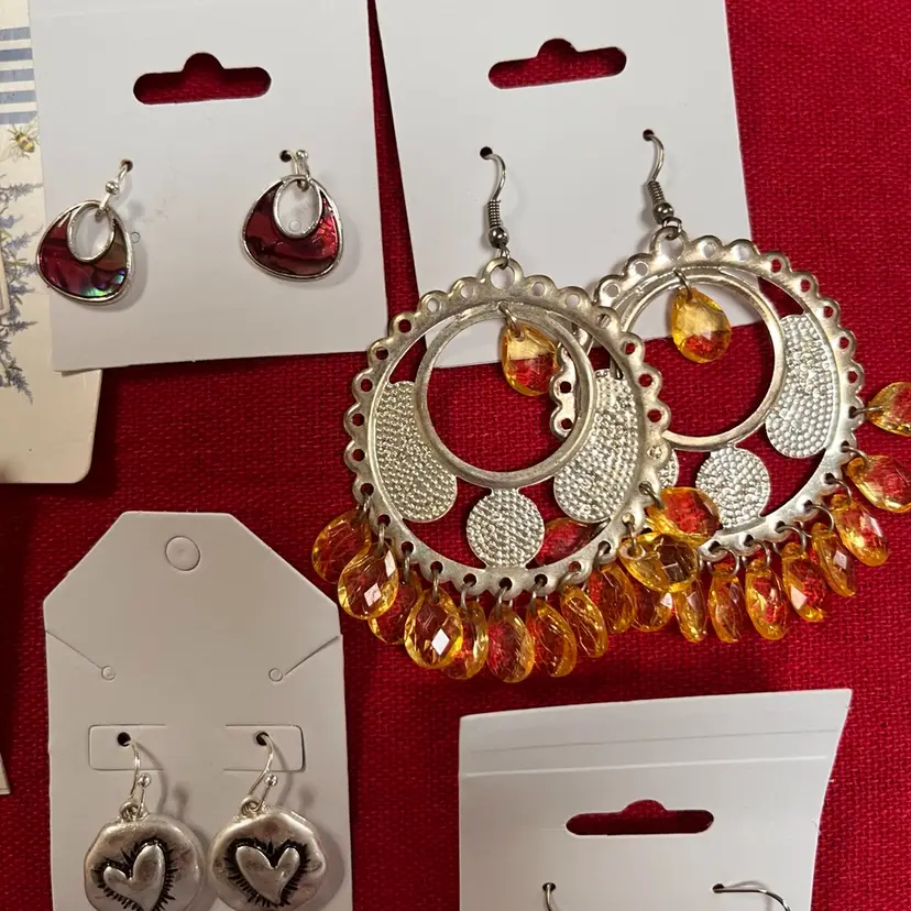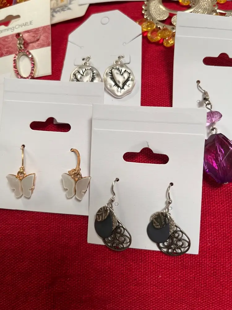All earrings are ready for wear or resale. Beads, shell, rhinestones acrylic.