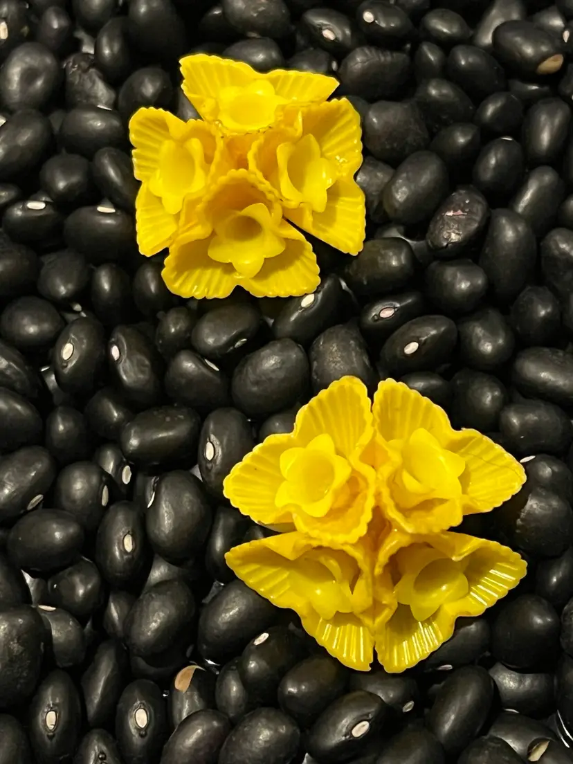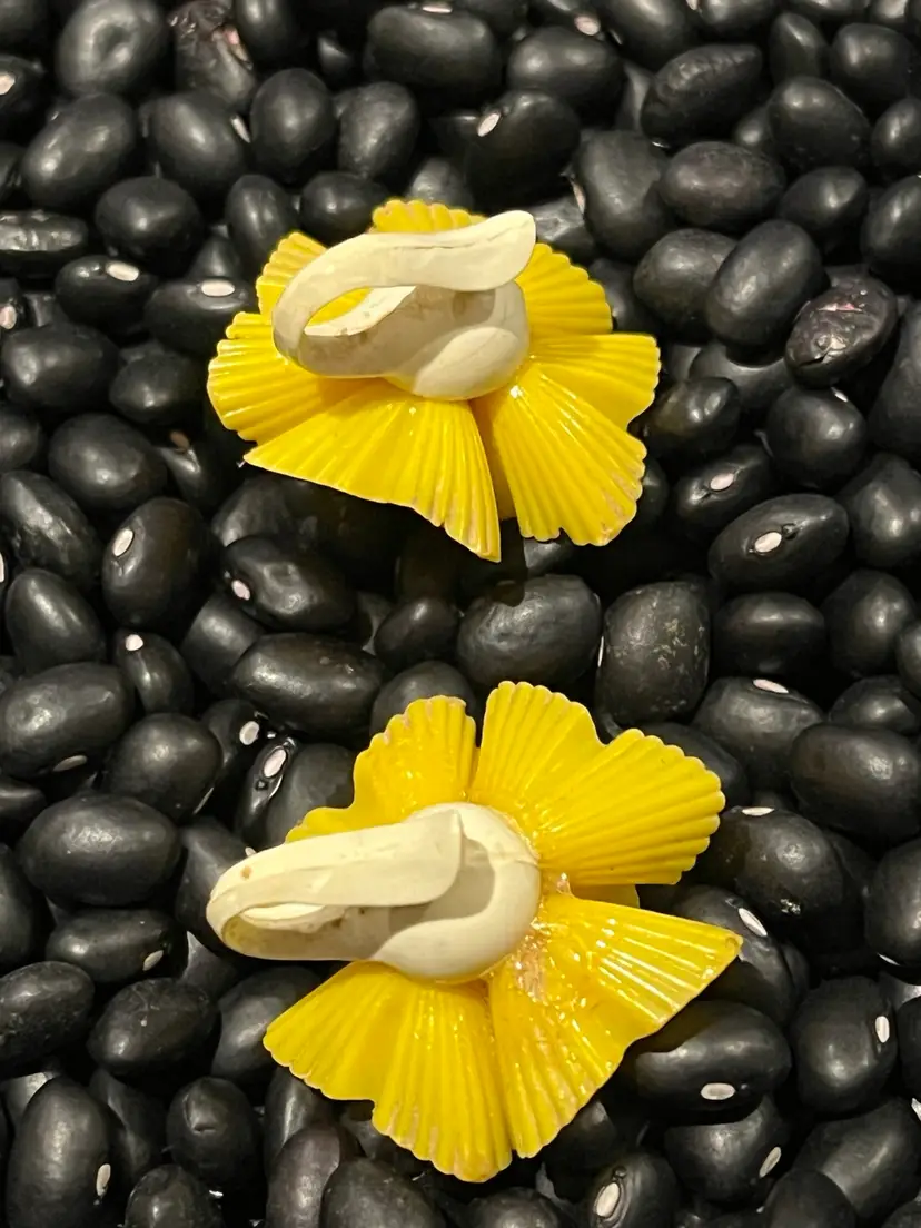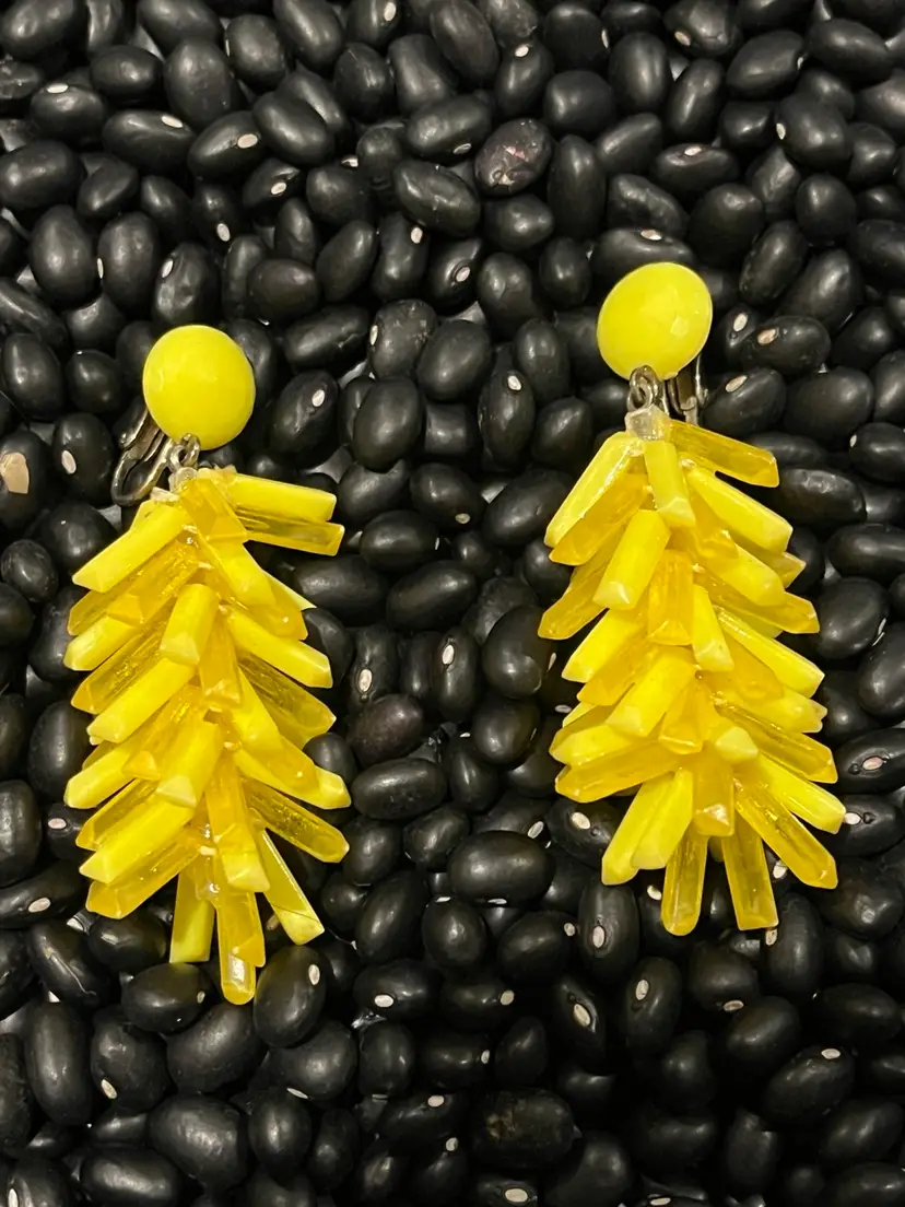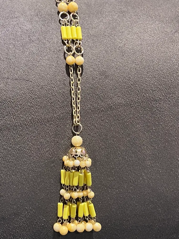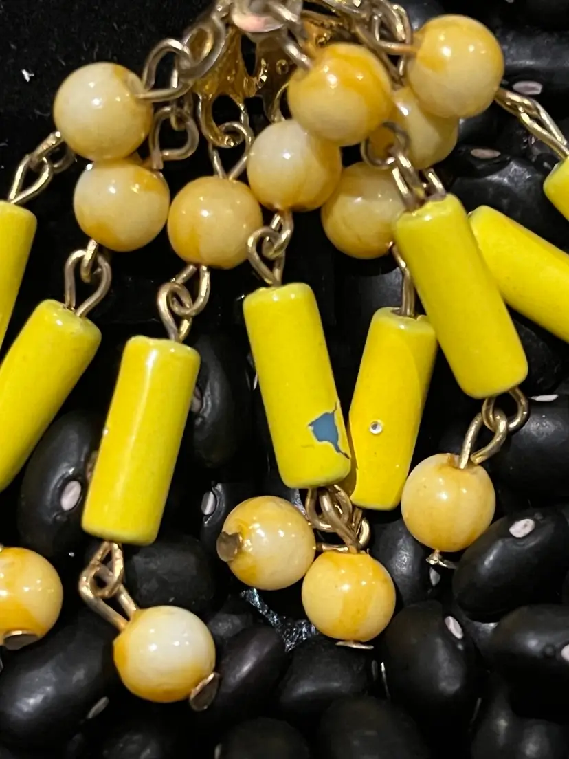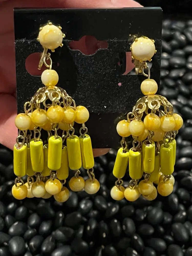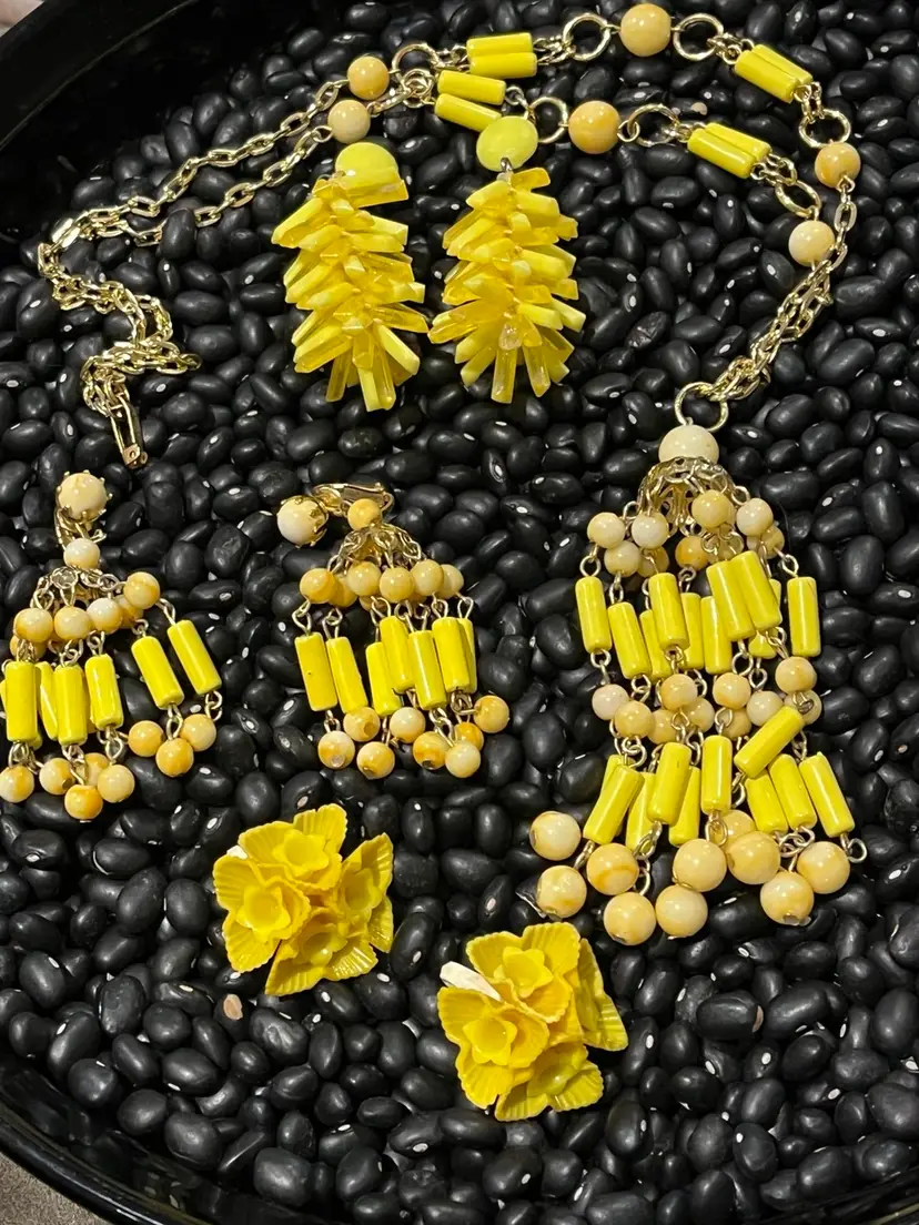 3 pairs of clip on earrings and 1 matching necklace. Most marked Hong Kong. Great condition, a few beads on the earrings have wear, please see pictures.