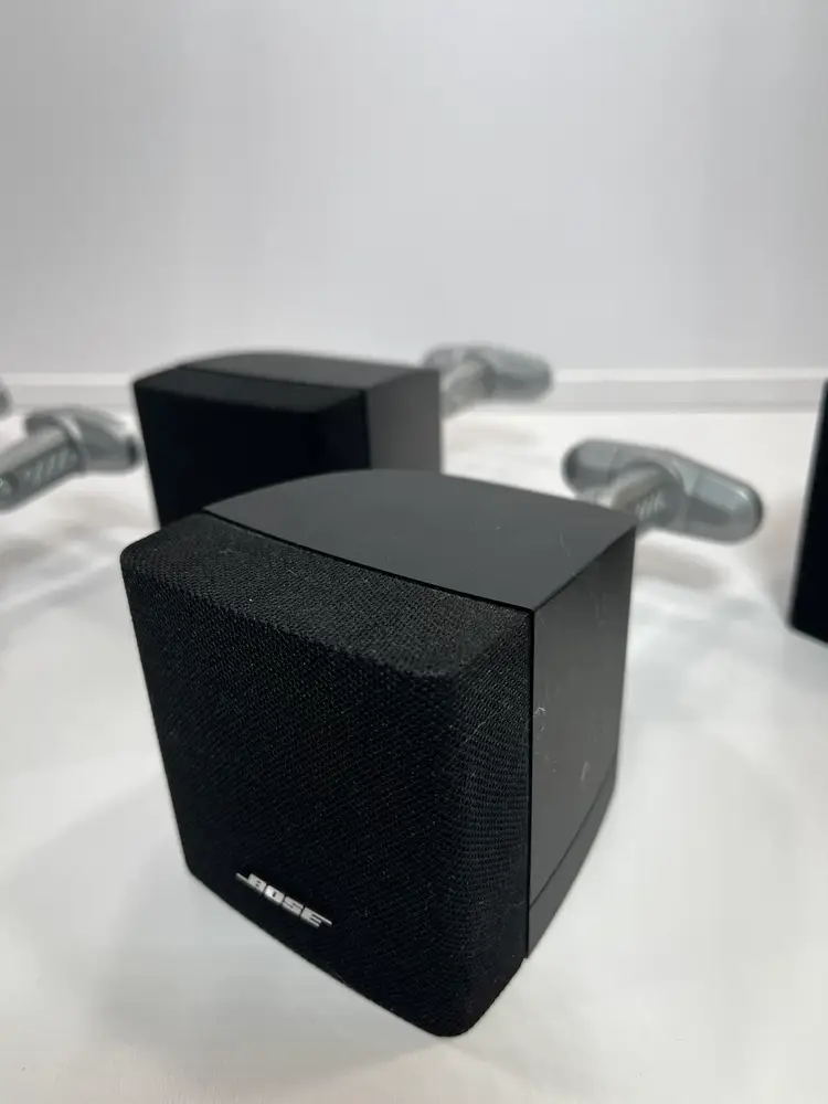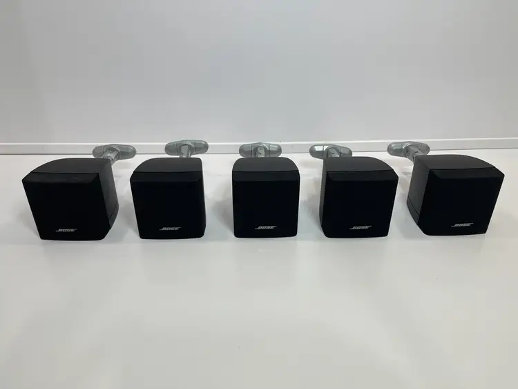 5 Bose cube speakers in excellent condition. These were salvaged from a remodel and work great. Clean with no dings, dents, or damage. Heavy duty mounts included! 3x3x4” approx. speaker size. Please review all pictures & video. Fast, easy, and safe shipping. Thanks!