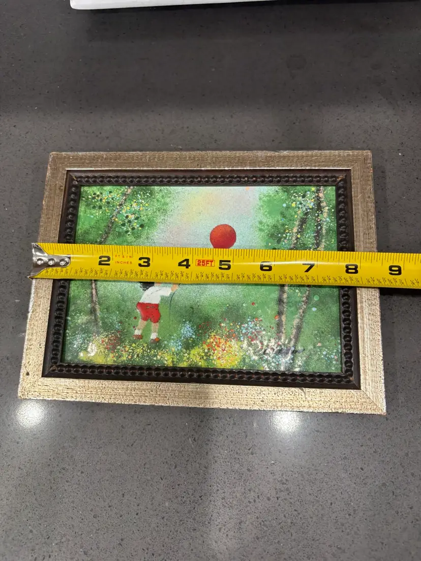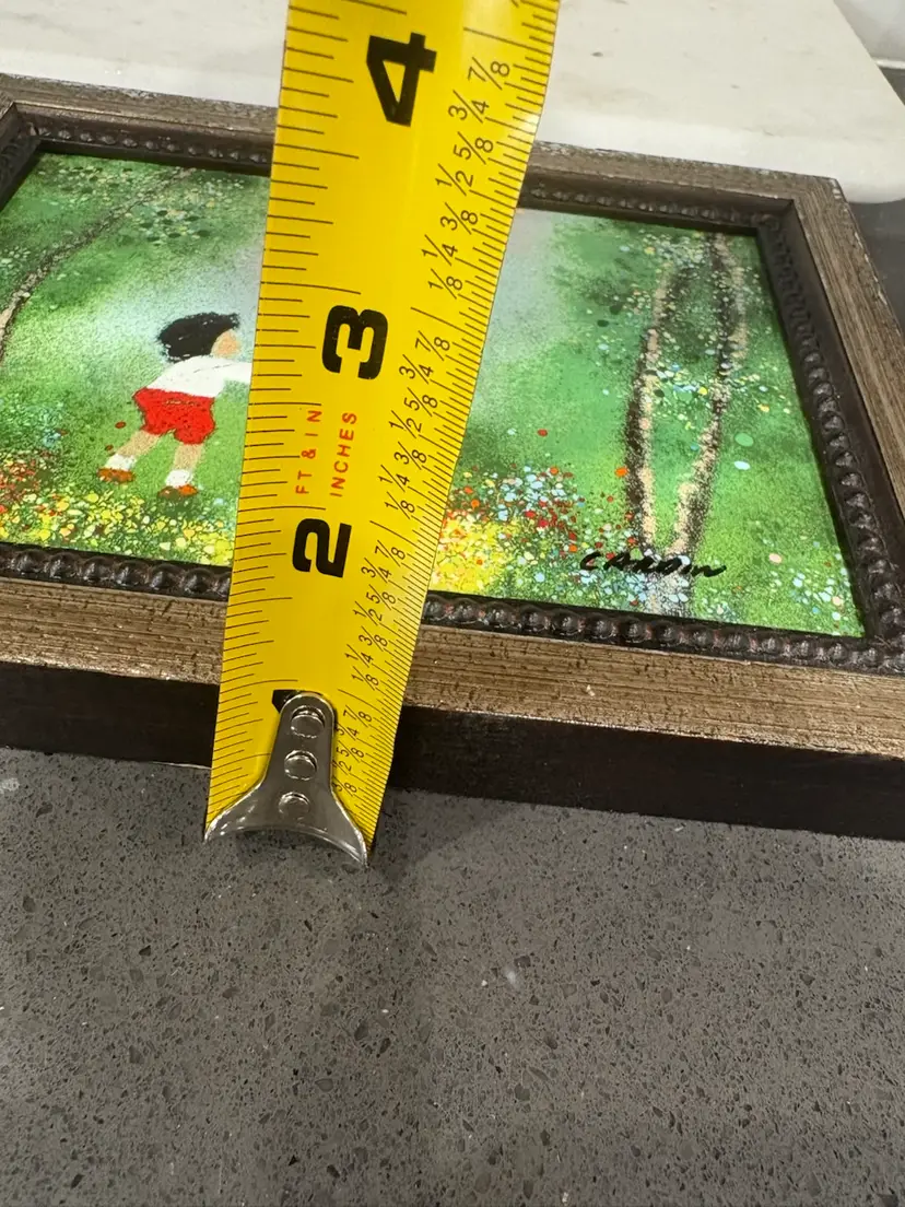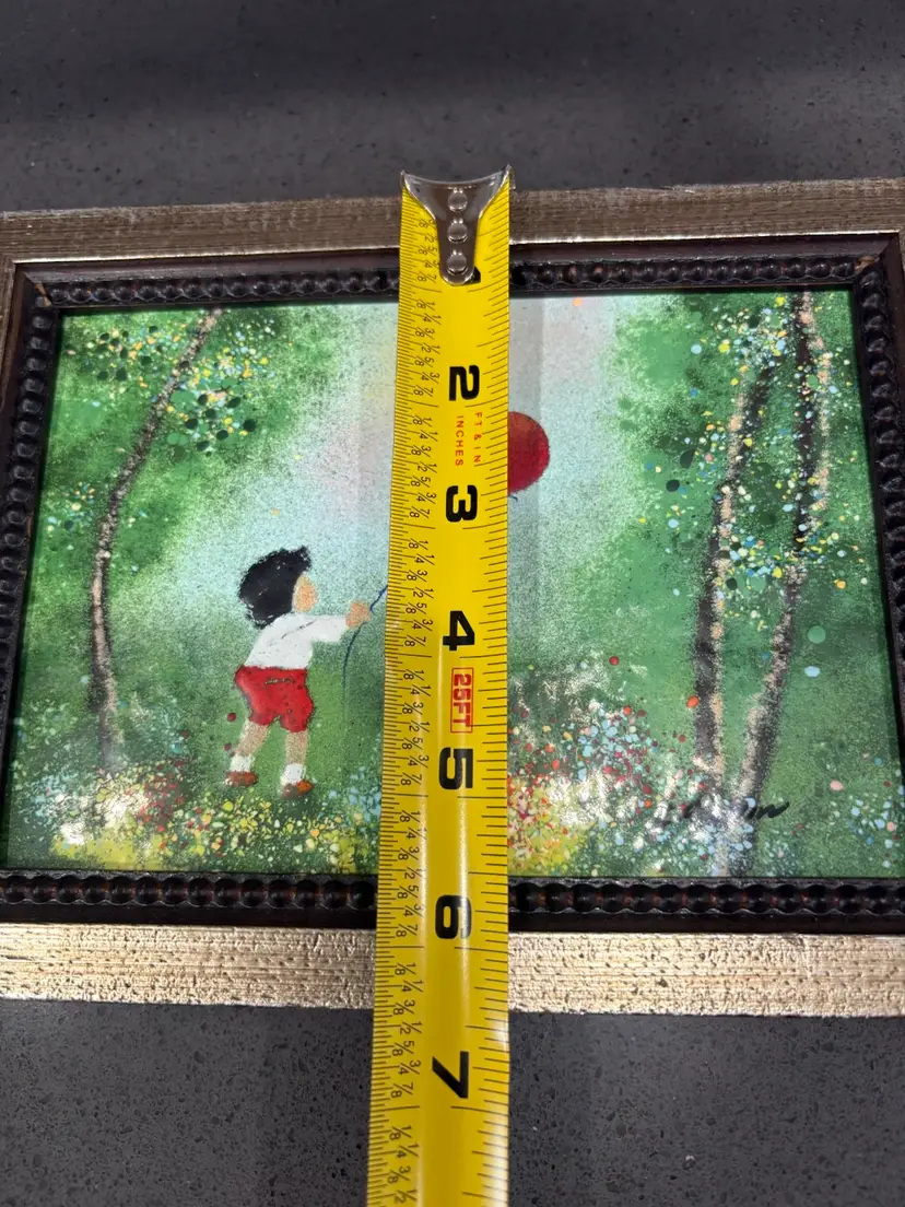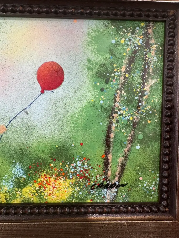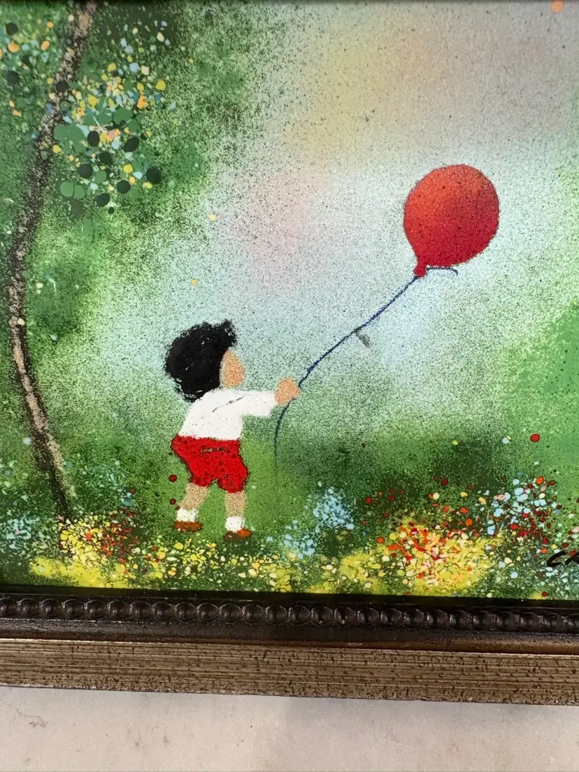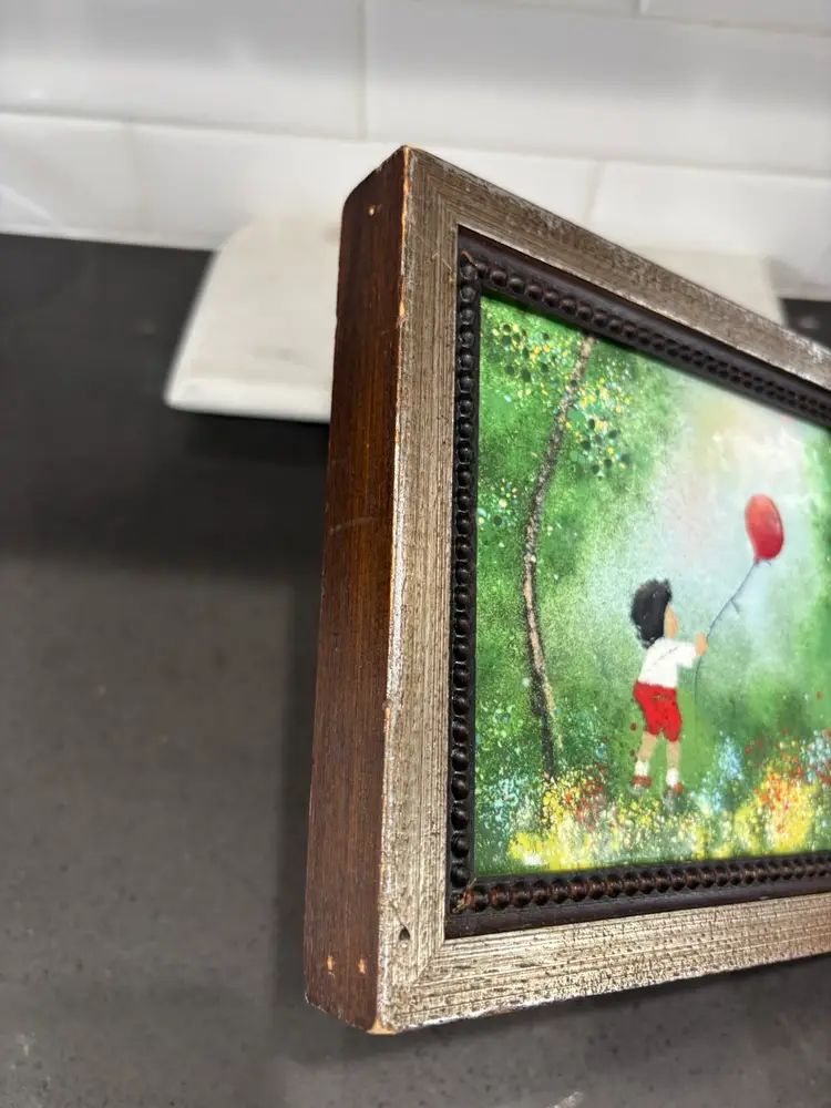 Louis Cardin Enamel On Copper Child With Red Balloon Framed