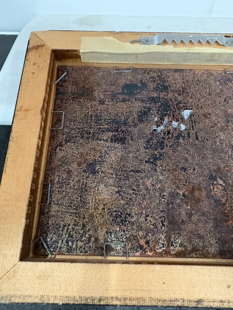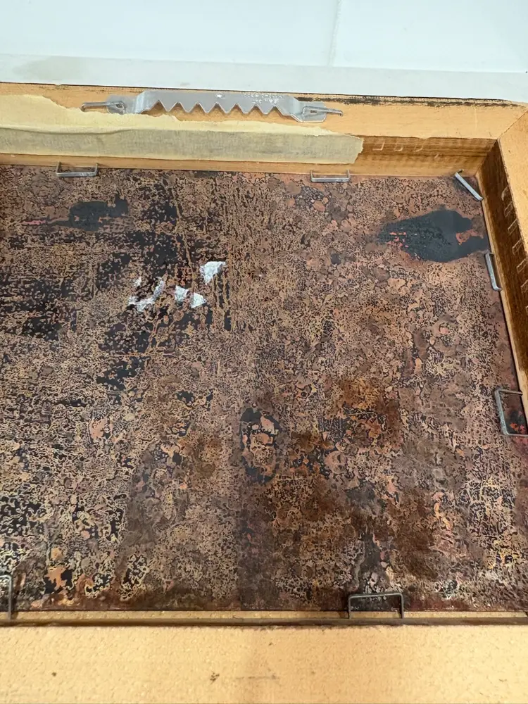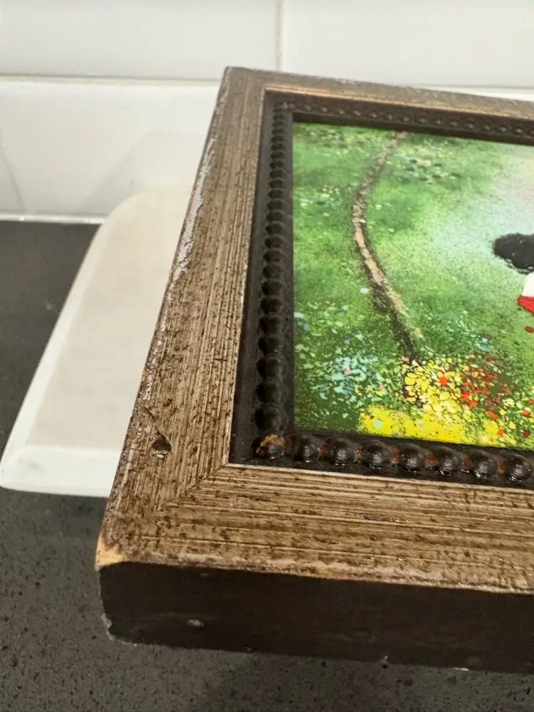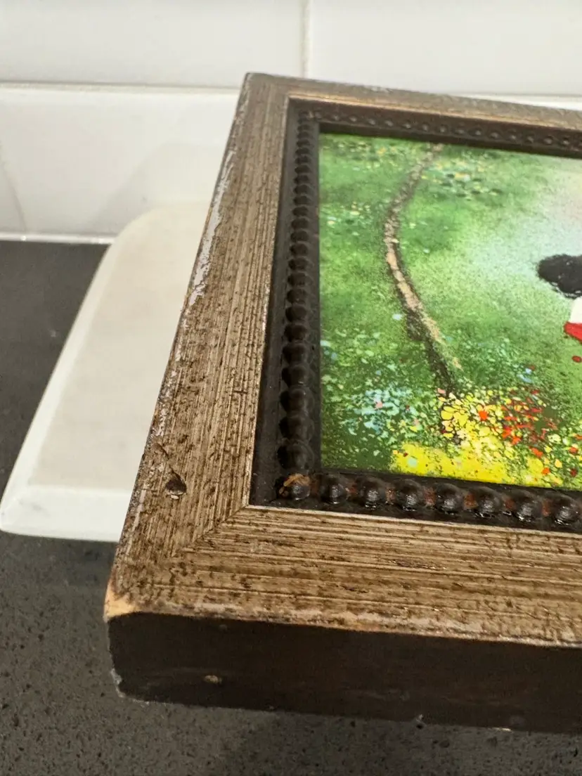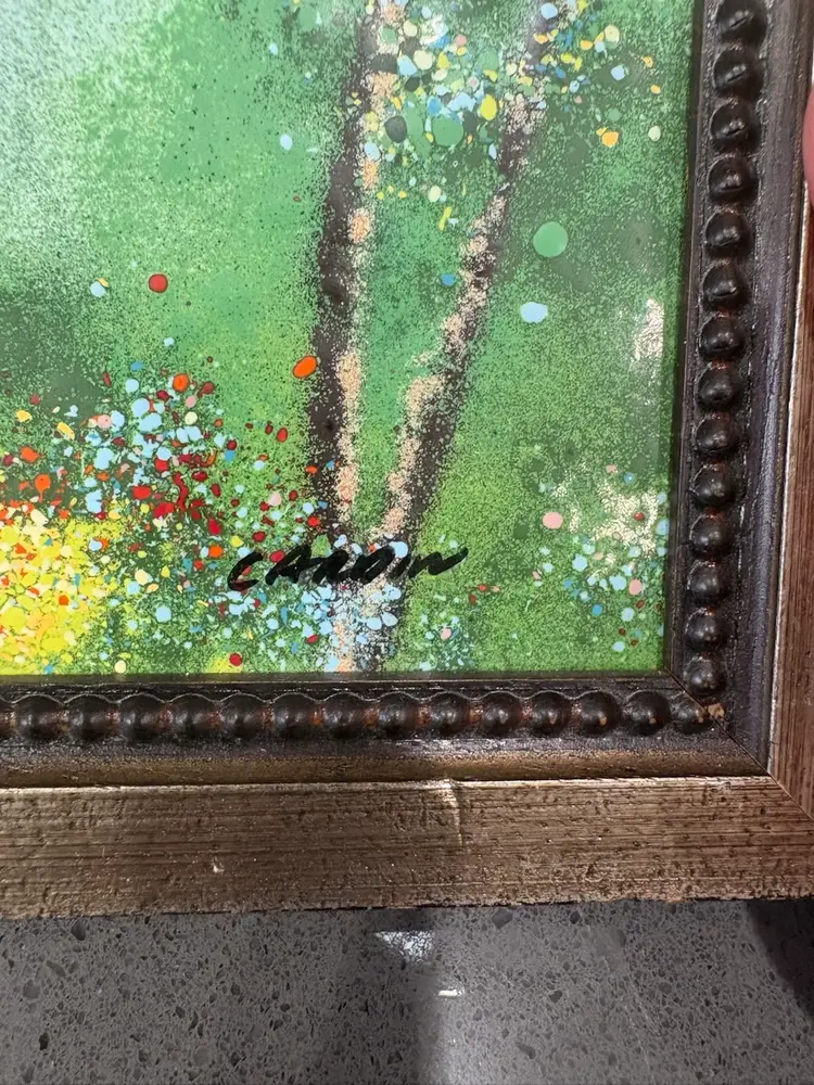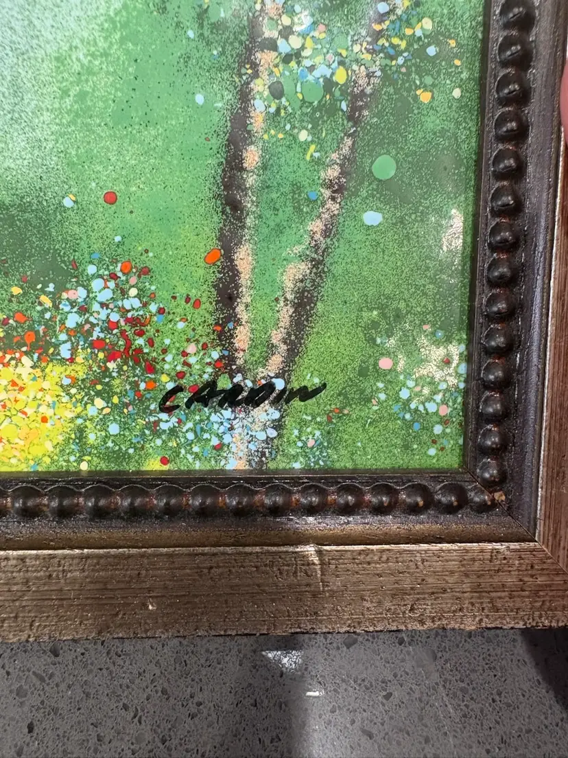 Louis Cardin Enamel On Copper Child With Red Balloon Framed