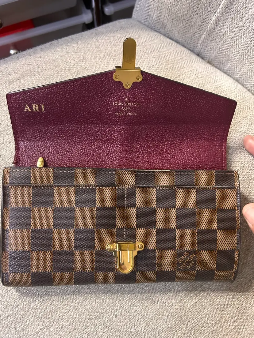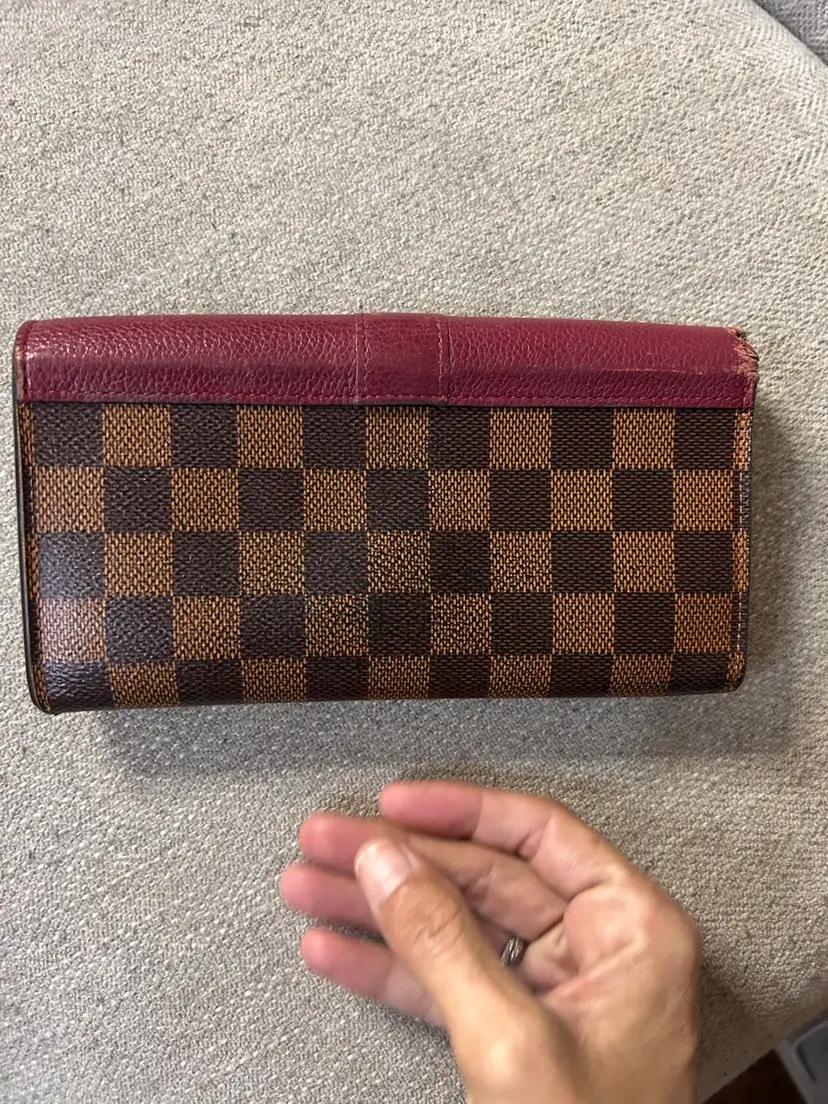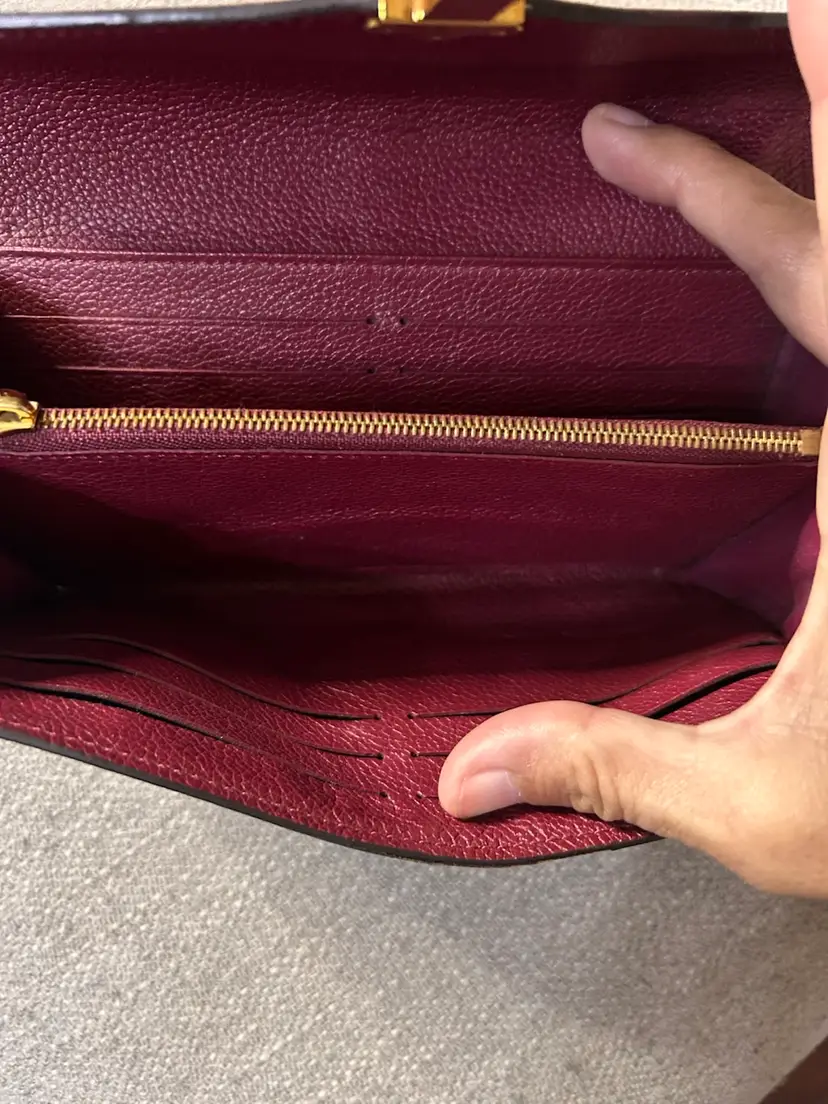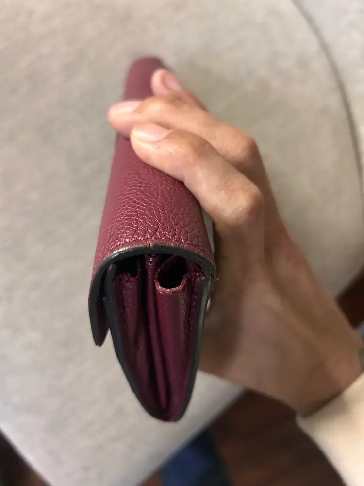 This wallet is actually very beautiful. There are callouts shown in pictures, the corner on one side and initials on the inside minor scratches/ware to the hardware