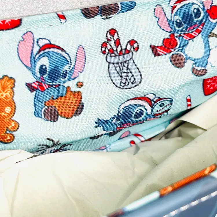 Celebrate Stitch in style this holiday season with this charming Loungefly crossbody bag! Featuring Snowy applique, glitter details, and an adjustable strap, it’s the perfect accessory for festive outfits or Disney fans on the go. Made with vegan leather and sturdy metal hardware, this bag is as durable as it is adorable.