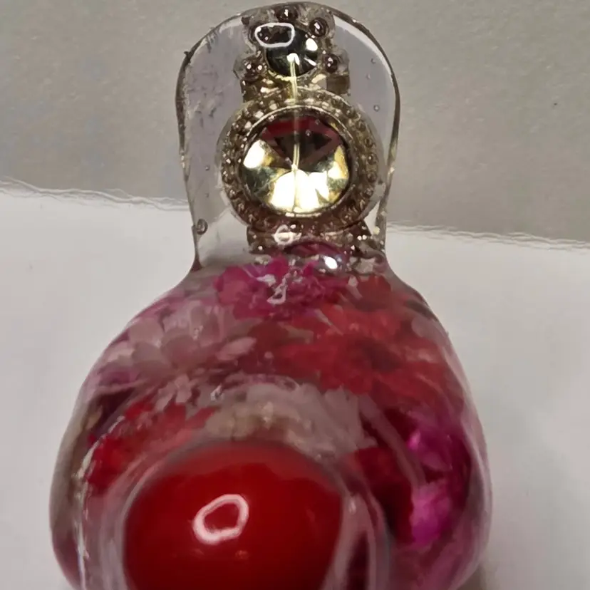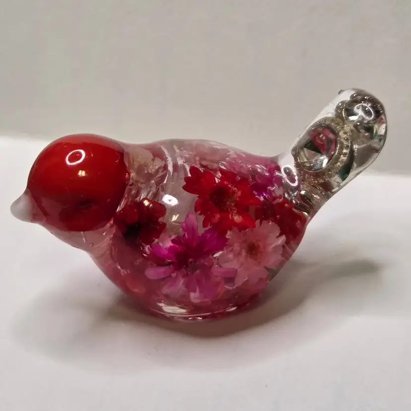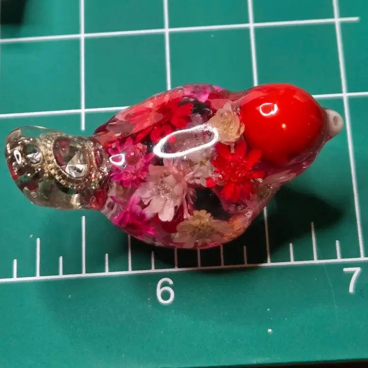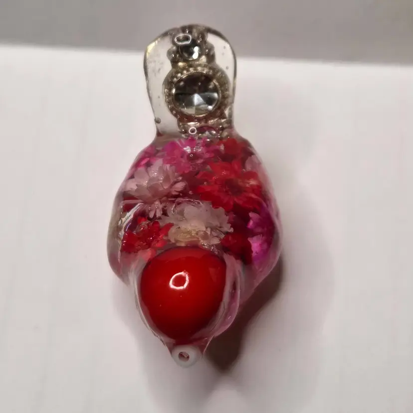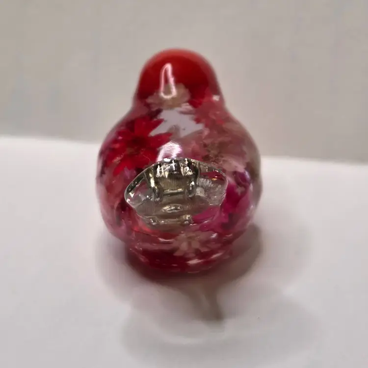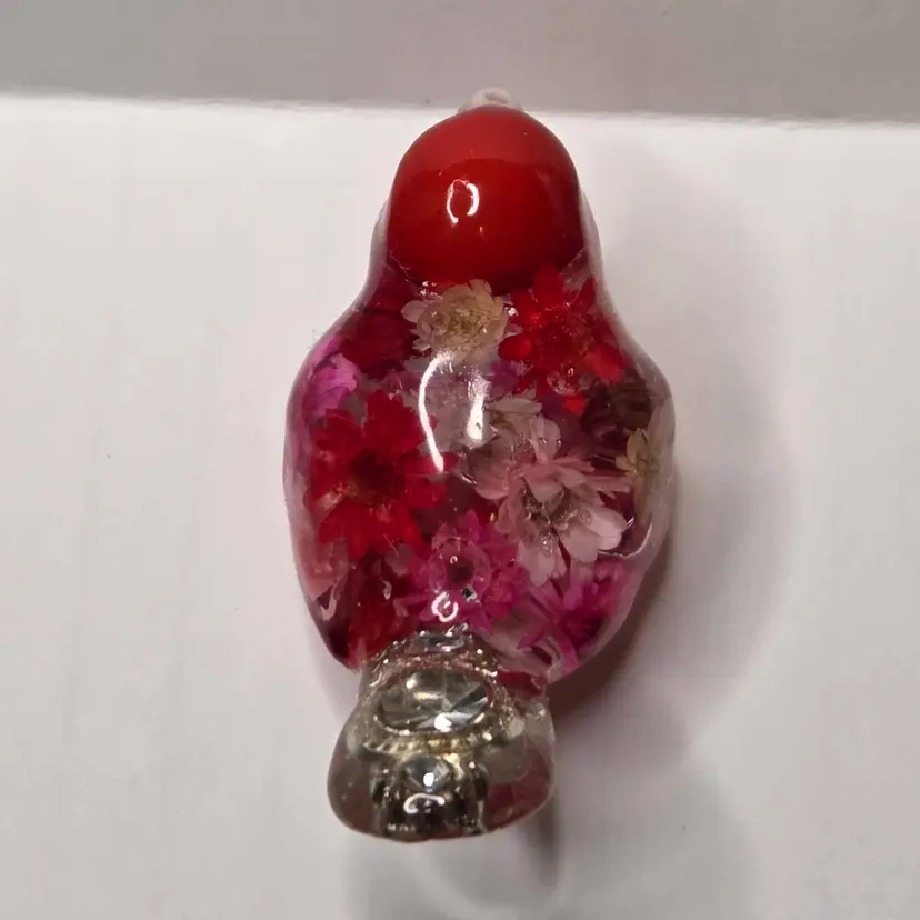 These tiny little birds are handmade from UV resin and bits of baubles and bling from my craft jewelry pile or whatever else I can throw in. No two are alike.