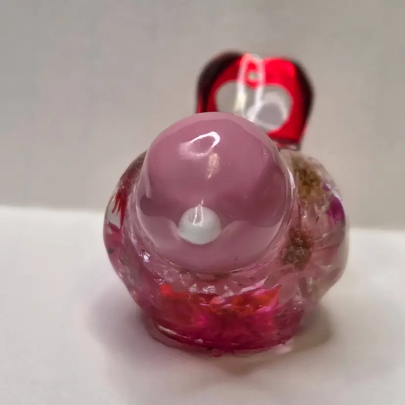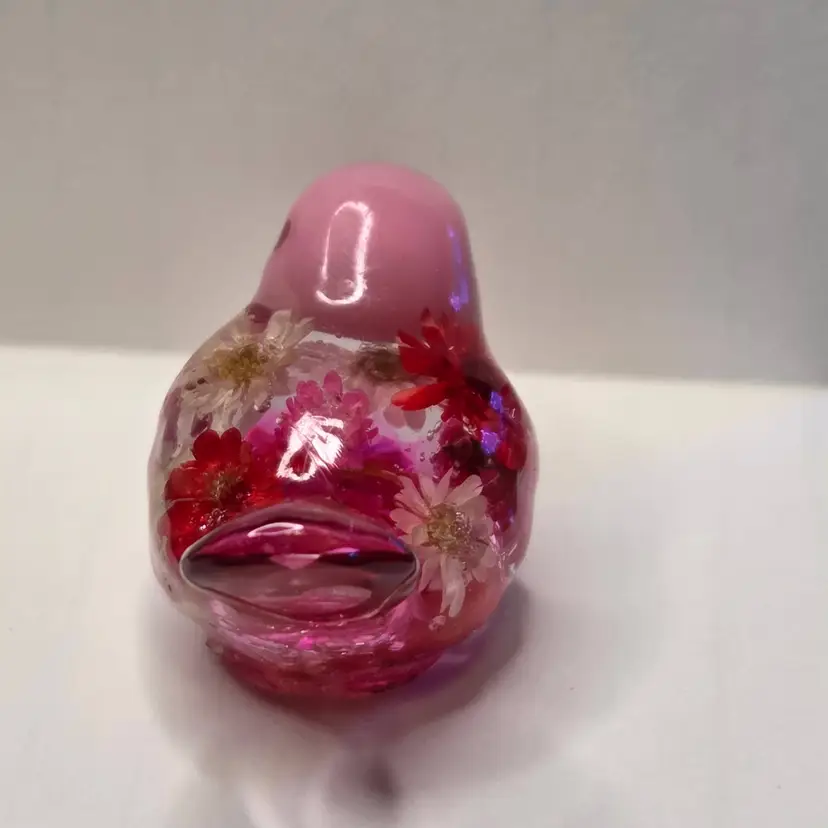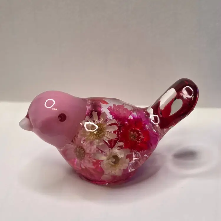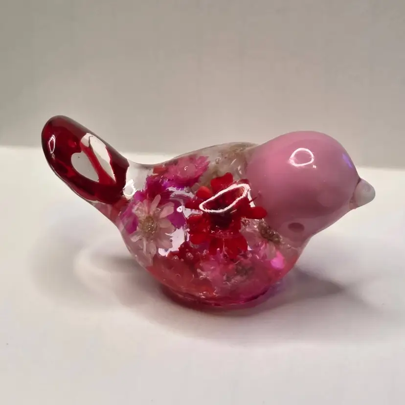 These tiny little birds are handmade from UV resin and bits of baubles and bling from my craft jewelry pile or whatever else I can throw in. No two are alike.