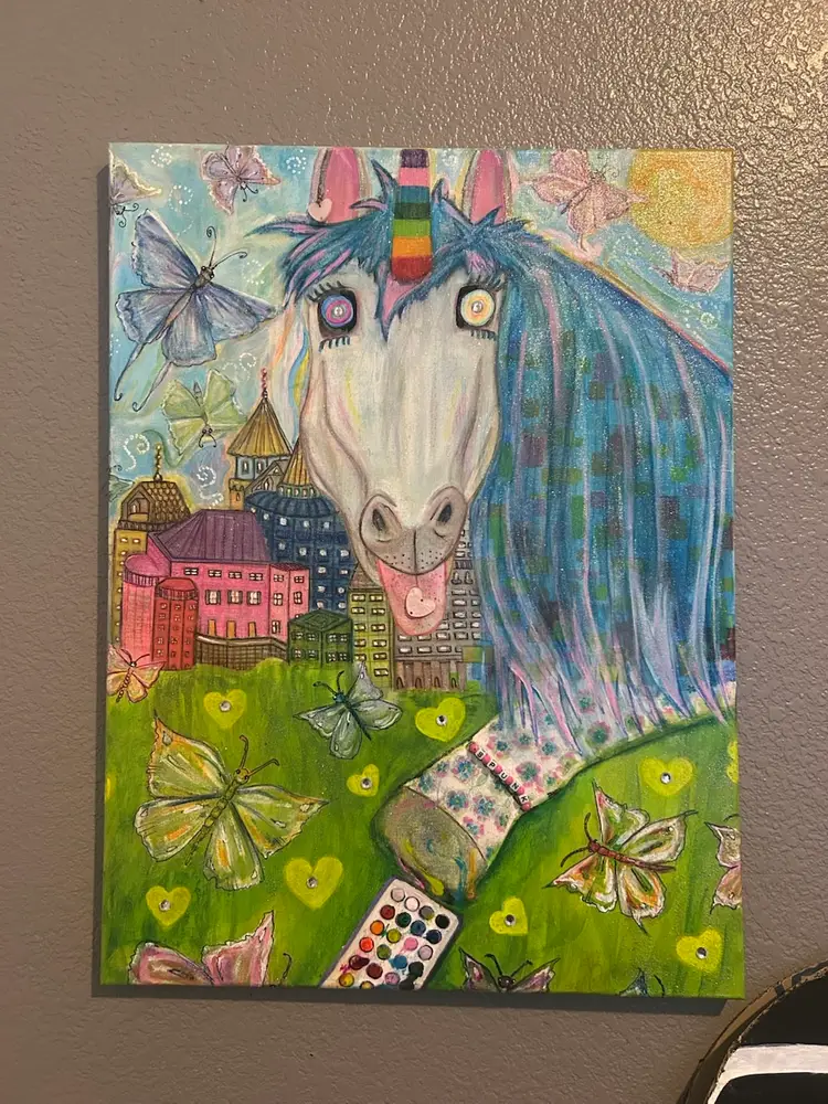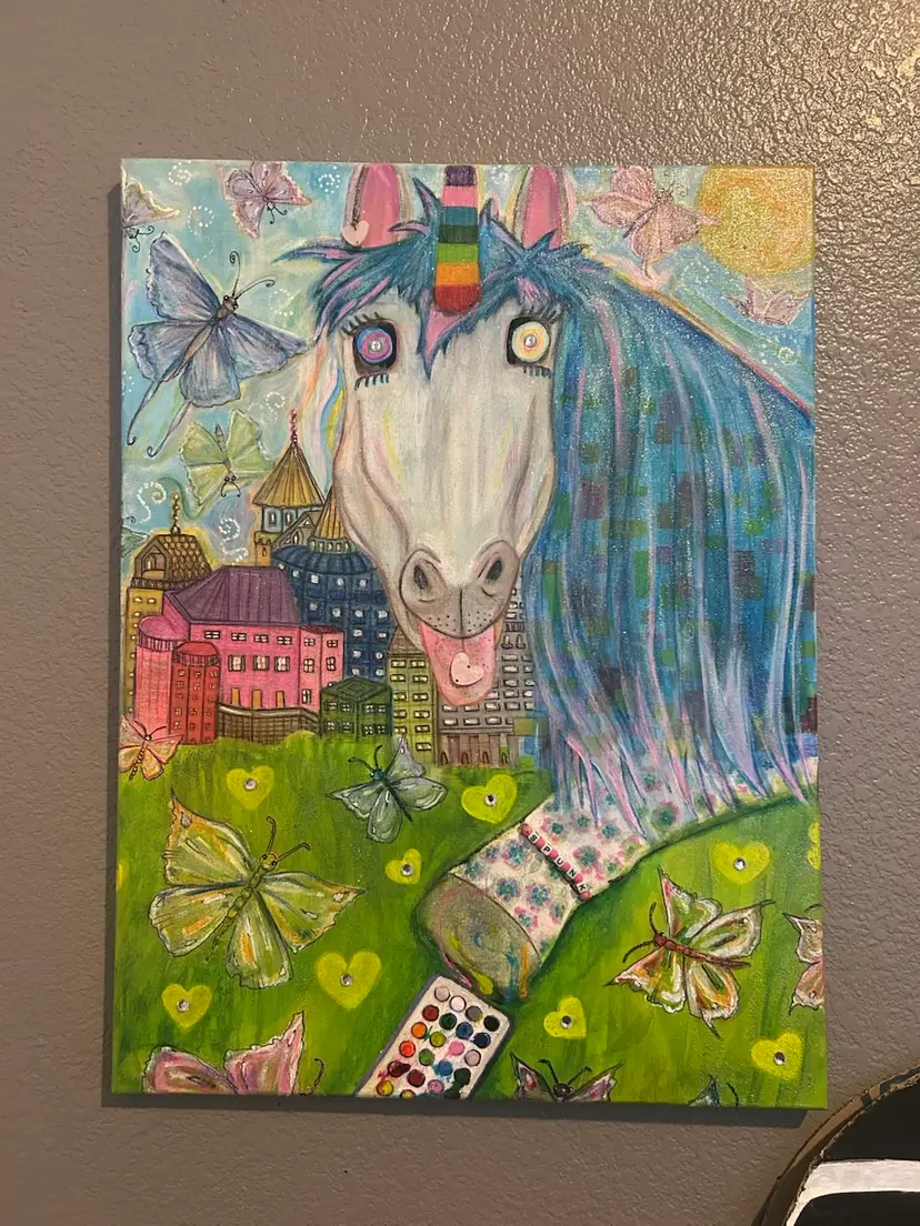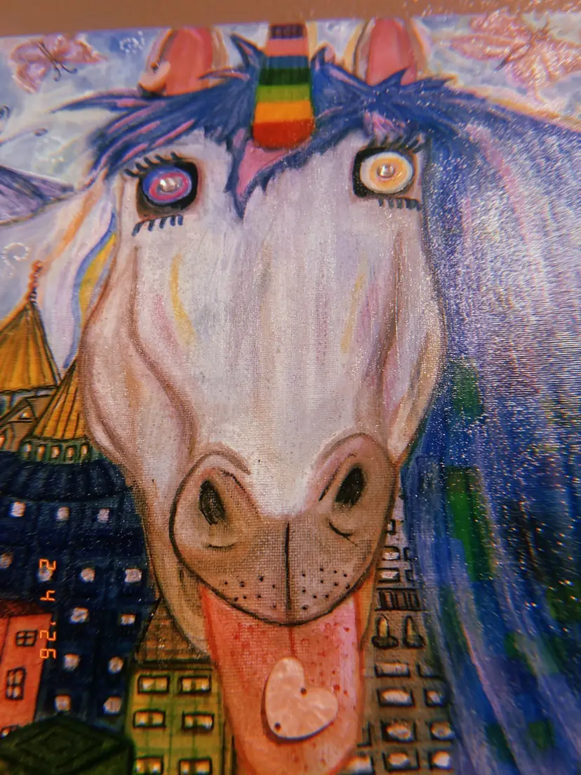 This is an original dreamcore acrylic unicorn infused with magical good vibes and lots of glitter ๐
