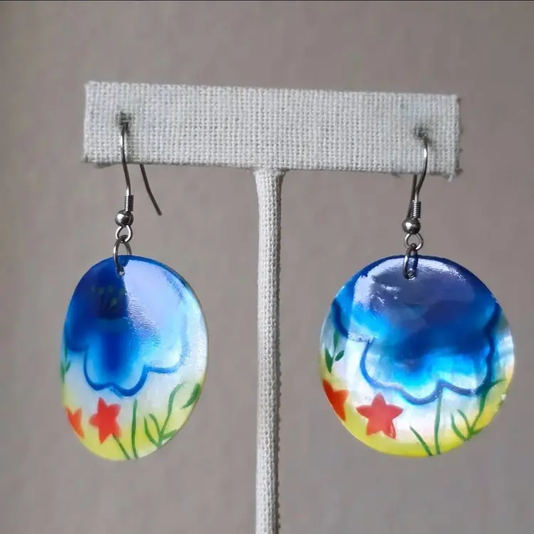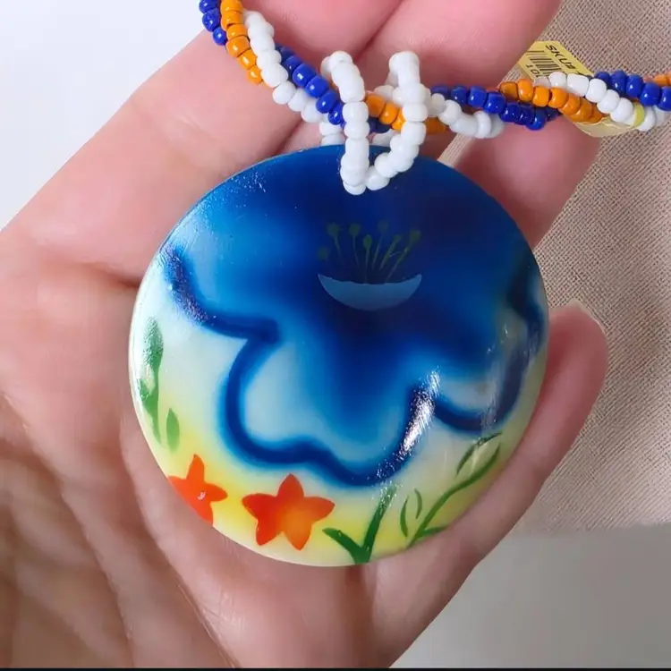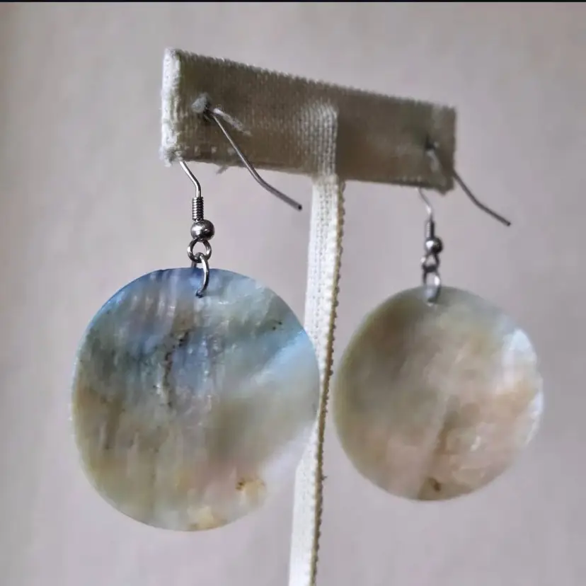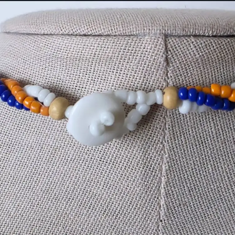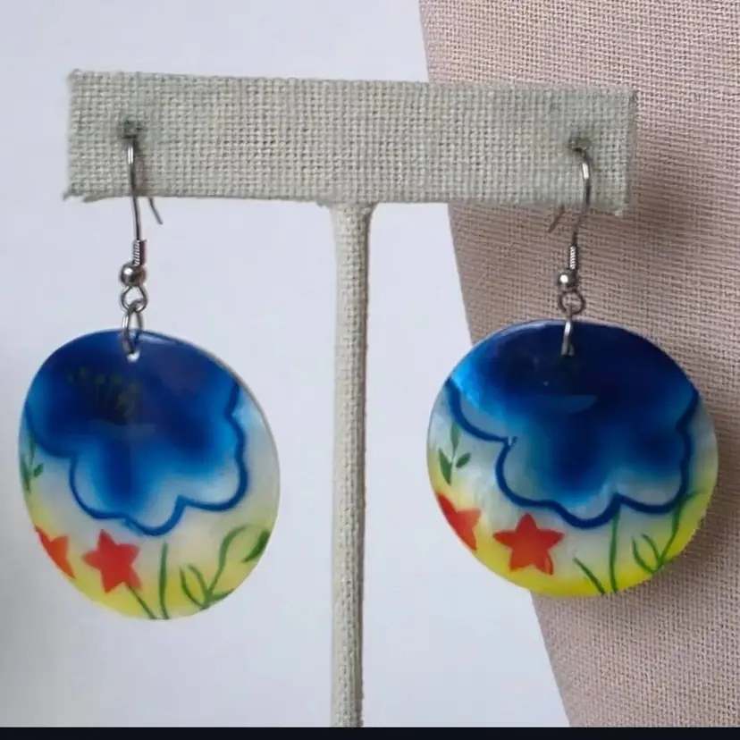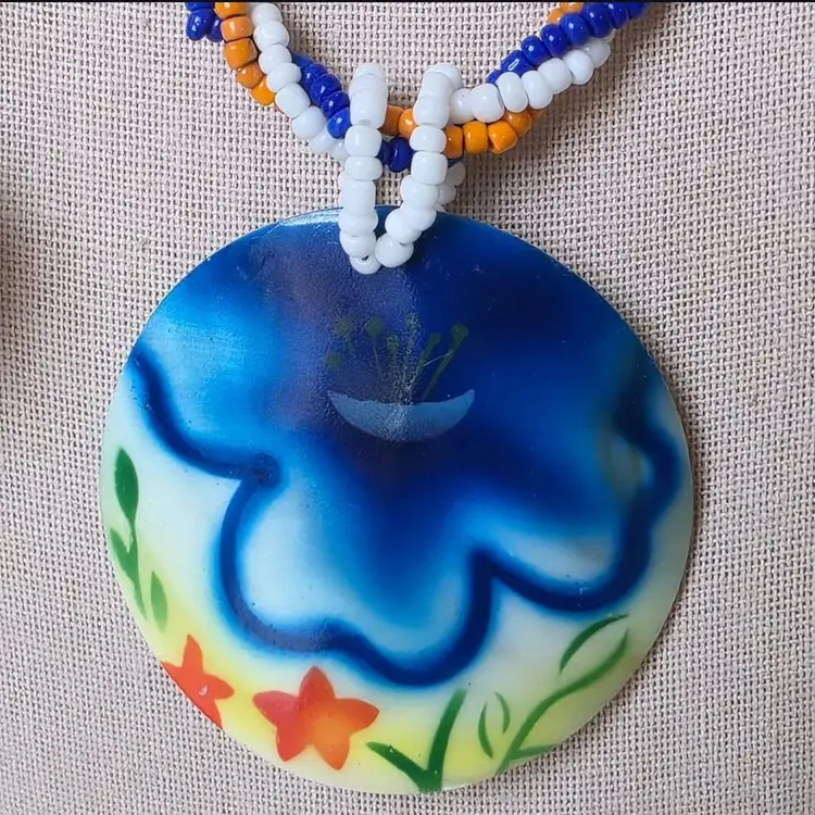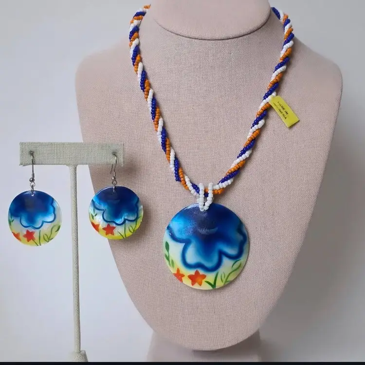 Lovely shell necklace and earrings set, made in Indonesia. Please review photos carefully as part of the description and condition.