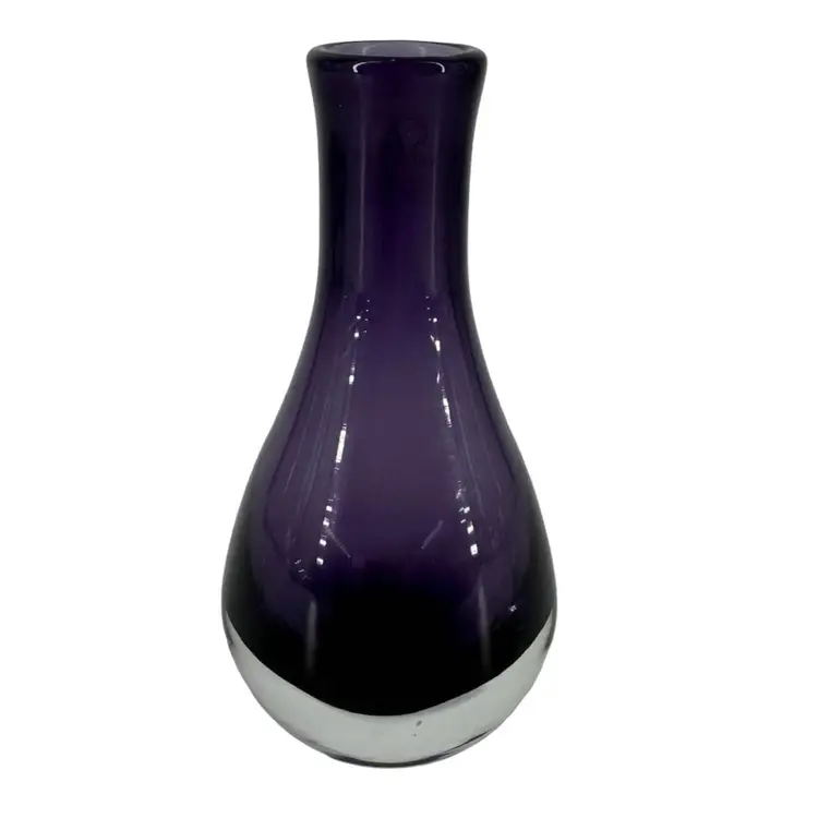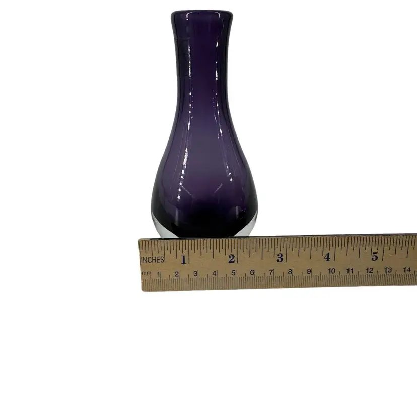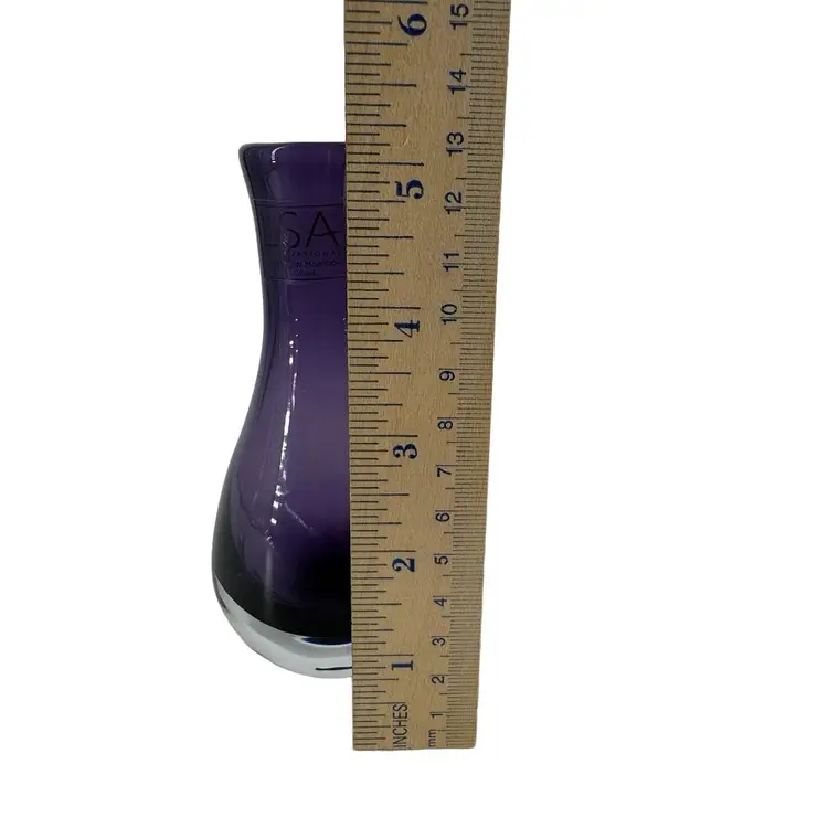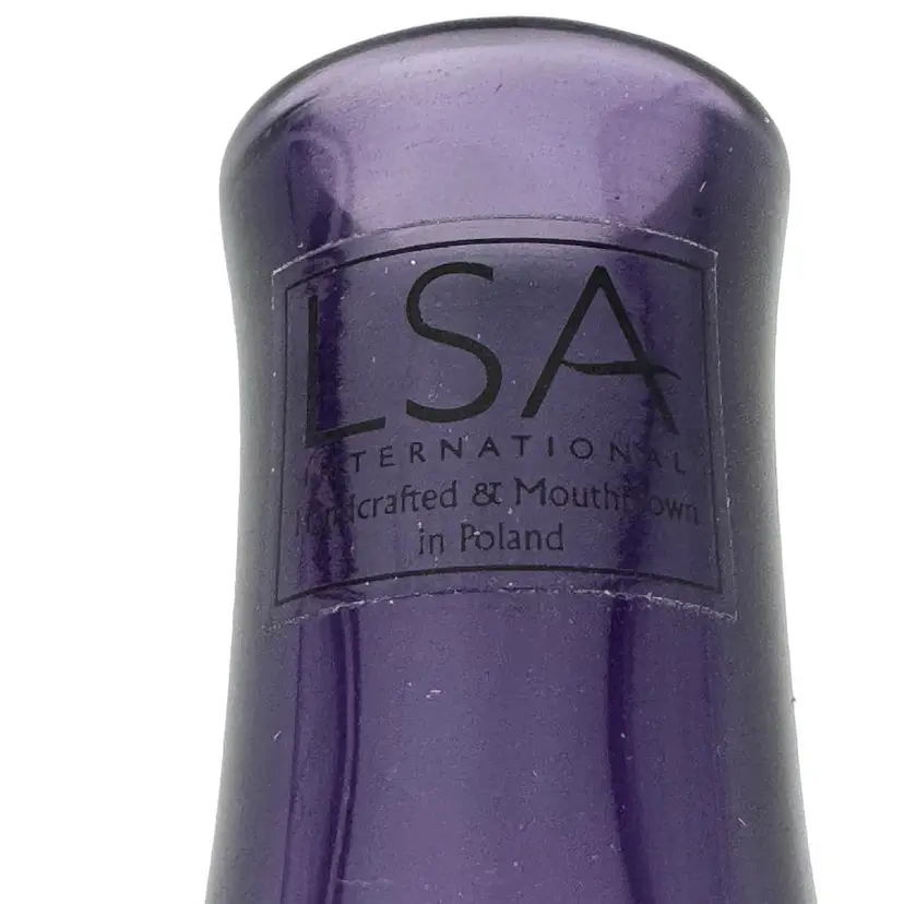 This LSA International bud vase is handmade in Poland, features a solid pattern and purple color. The vase stands at approximately 5 inches tall with a width of 1.5 inches and is made of high-quality glass. The original sticker is still on the glass.