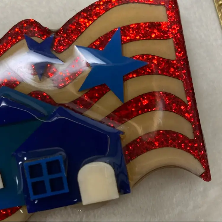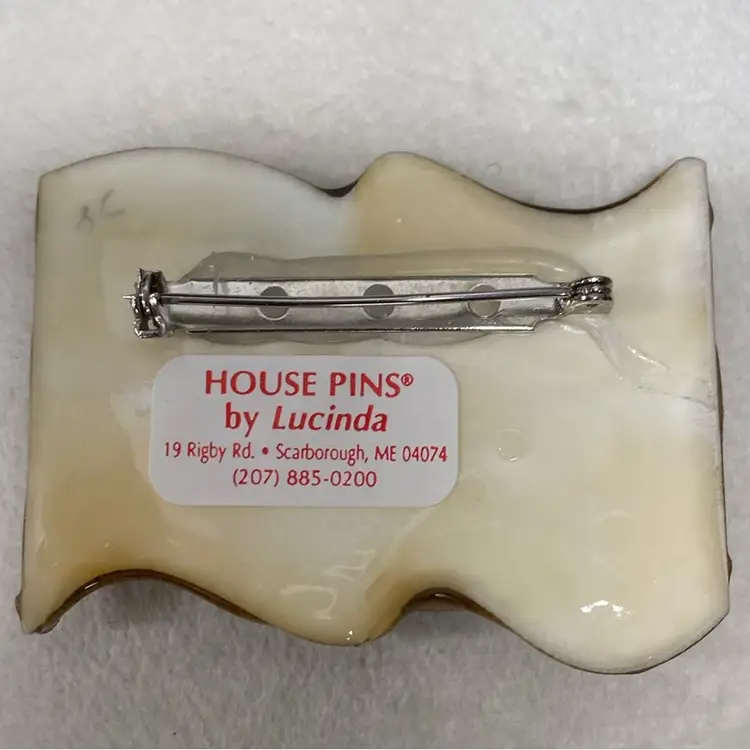 Very detailed and dimensional. Pin is in very good vintage condition. Has a ‘House Pins by Lucinda’ sticker on the back.