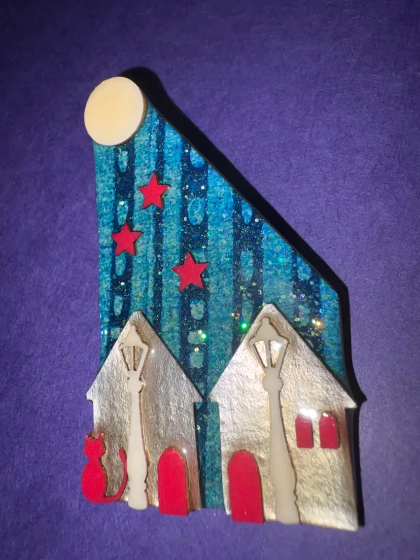 Very dimensional. Pin is in excellent vintage condition. ‘House Pins by Lucinda’ sticker is on the back.