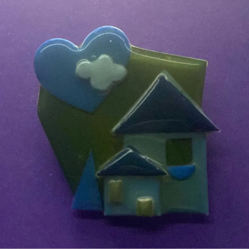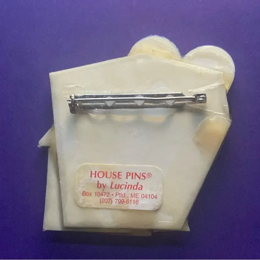 Condition: Pin is dimensional and in excellent vintage condition with a very shiny finish. Has ‘House Pins by Lucinda’ sticker on the back.