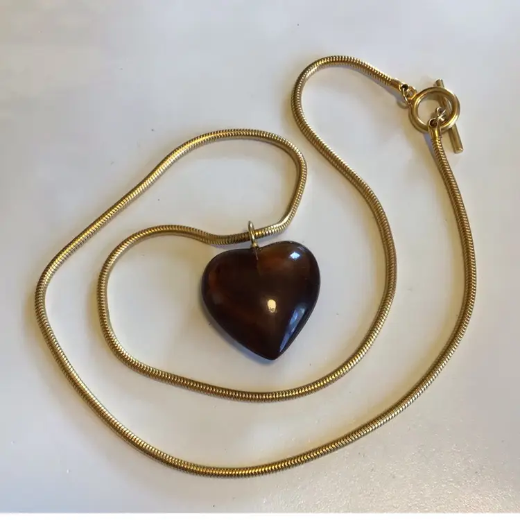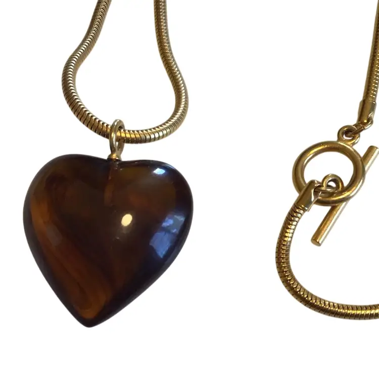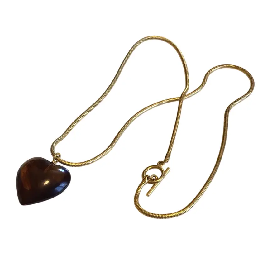 Long 30” gold tone snake chain with toggle clasp. Pendant is 1-1/2”x 1-1/2”, chain is very supple. #739
