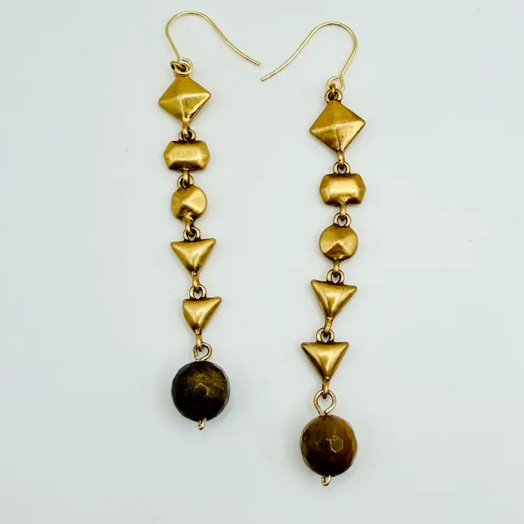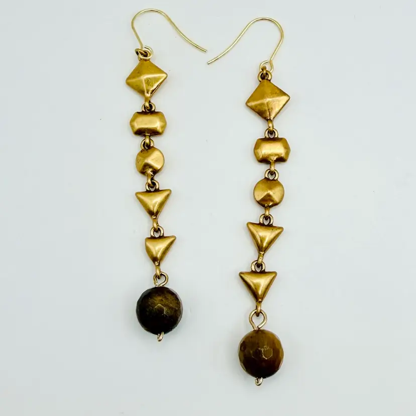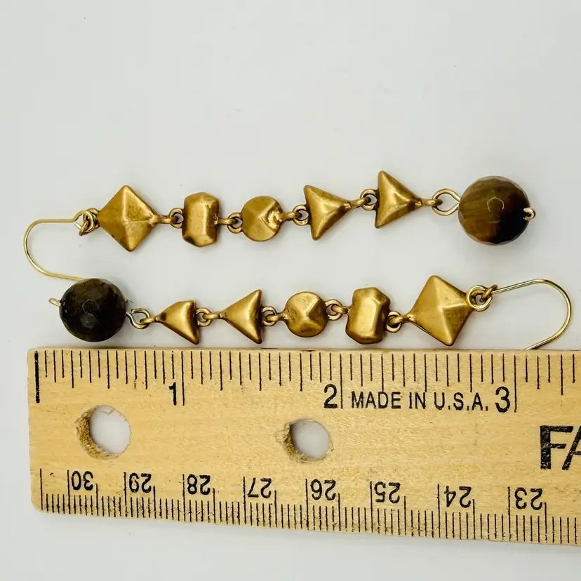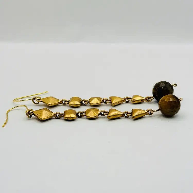 These earrings are 3” long and in good condition with new stainless steel ear wires added for sanitary purposes. Faceted tigers eye beads. I ship within 24 hours of purchasing.