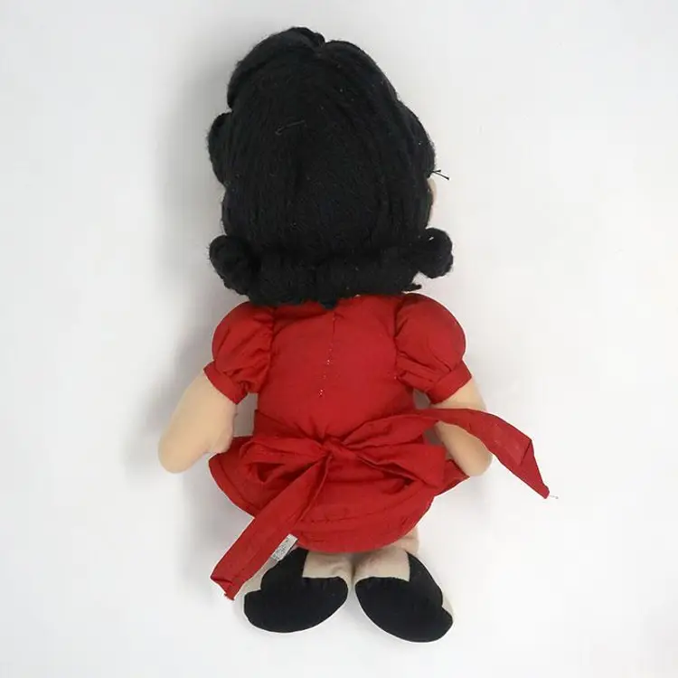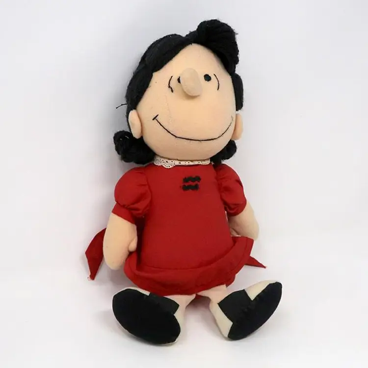 Bring home the bossy yet lovable Lucy Van Pelt with this charming plush doll. Dressed in her classic red dress with a white lace collar paired with her black and white saddle shoes. Soft and huggable, Lucy is ready to join your Peanuts gang. In very good condition with signs of basic play. Apparel is not removable. Lucy is about 14" tall and was made by Determined Productions in the early 1980s.