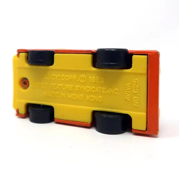 Get some advice on the go with this Lucy Van Pelt Psychiatric Help Car. Featuring Lucy in her iconic orange booth, this collectible toy car is great for any Peanuts fan. The sign reads 'Psychiatric Help 5¢' and 'The Doctor is In' just like in the comic strip. She's ready to roll into your Peanuts collection. In very good condition with some minor wear on edges and Lucy's hair. Made by Aviva in the 1970s.