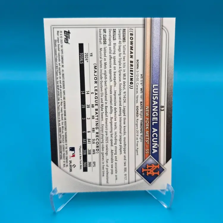 Luisangel Acuna Bowman Mega RC. NM or better condition. Shipped PWE.