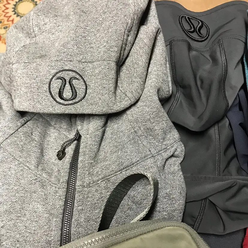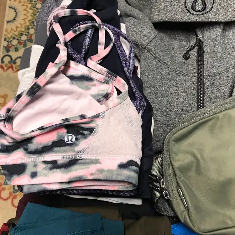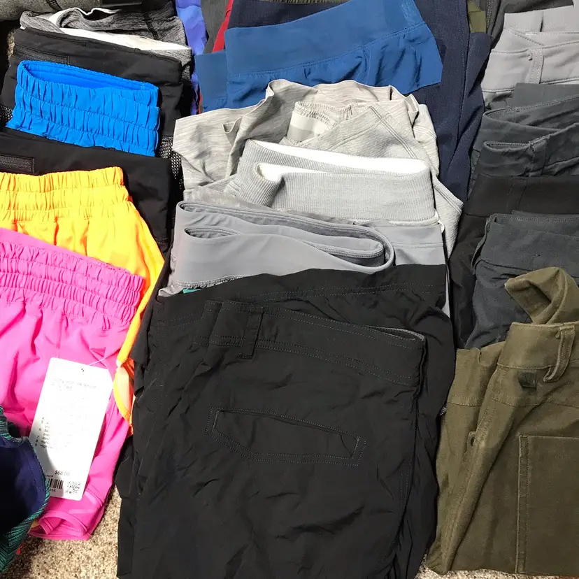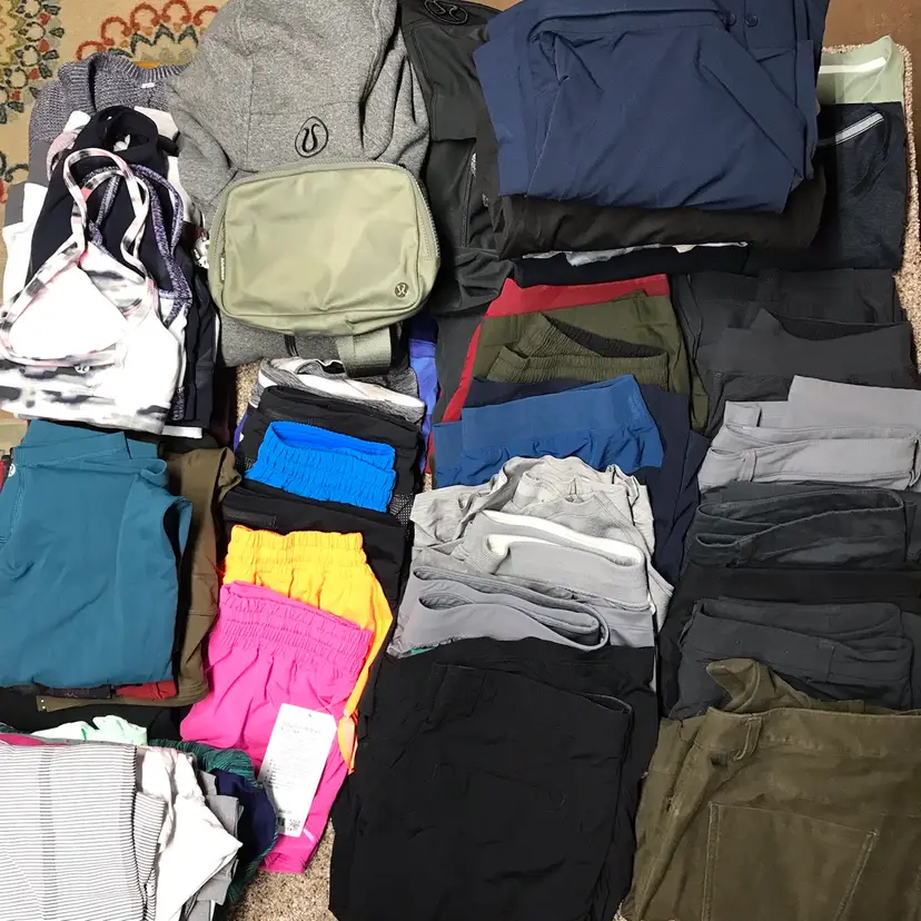 Sweaters 10, 1 NWT Hoodies 4 T-shirts 5 Tanks 2 Jacket 1 Pants 7 mens Leggings 5 Shorts 7 women 1 NWT Shorts 9 mens Polo 2 Bras 5 Scuba 2 Belt bag 1 Overall fantastic condition some new, some new without tag’s and a couple items might need a quick wash. Jump on this amazing whole sale lot delivered right to your door.