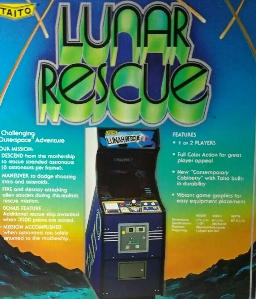 Lunar Rescue Arcade Flyer 1979 Original Game Art Retro Classic 8.5" x 11" Retro