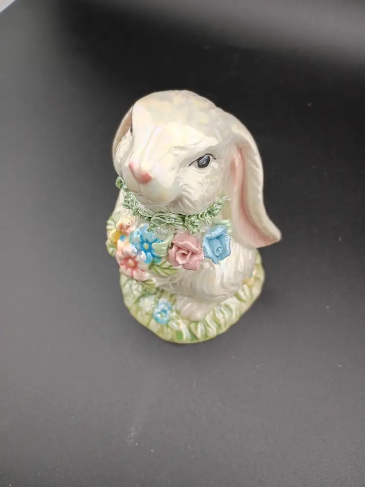 It doesn't get much cuter than this ceramic bunny figurine holding a bunch of flowers for you. She has a luster finish and is in excellent vintage condition with no chips or cracks.