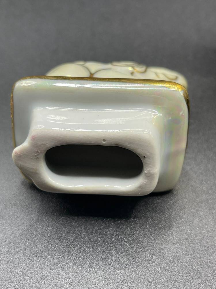Figural elephant mother and baby teapot with a lusterware finish and gold detailing/overlay. This measures approximately 5 inches tall and roughly 6 inches long. There are no chips or cracks, and the lid is fully intact.