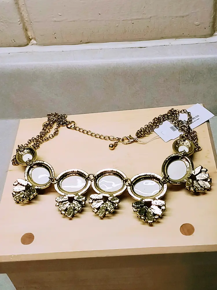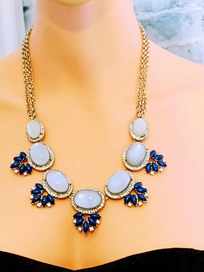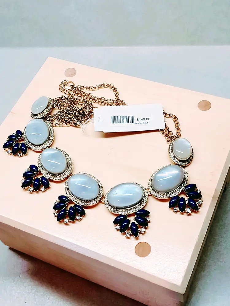 The Lydell NYC Glass Moonstone & Lapis Lazuli Brass Steel Necklace is a stunning piece of jewelry that features round light blue moonstones as the main stones. The necklace is 22 inches in length and has a collar style. It is made of stainless steel and has a bezel setting with nickel-free features. The secondary stones are glass lapis lazuli, and the necklace has a lobster closure for easy wearing. Perfect for a birthday or any special occasion, this necklace exudes beauty and elegance with a Victorian theme.