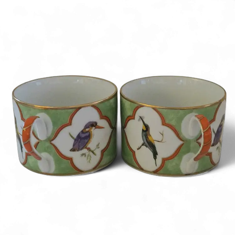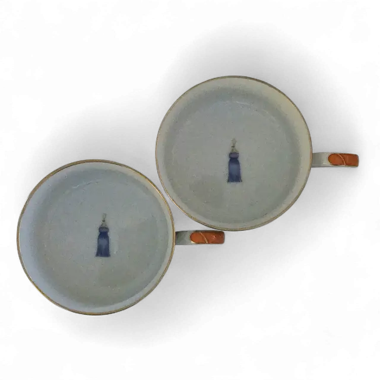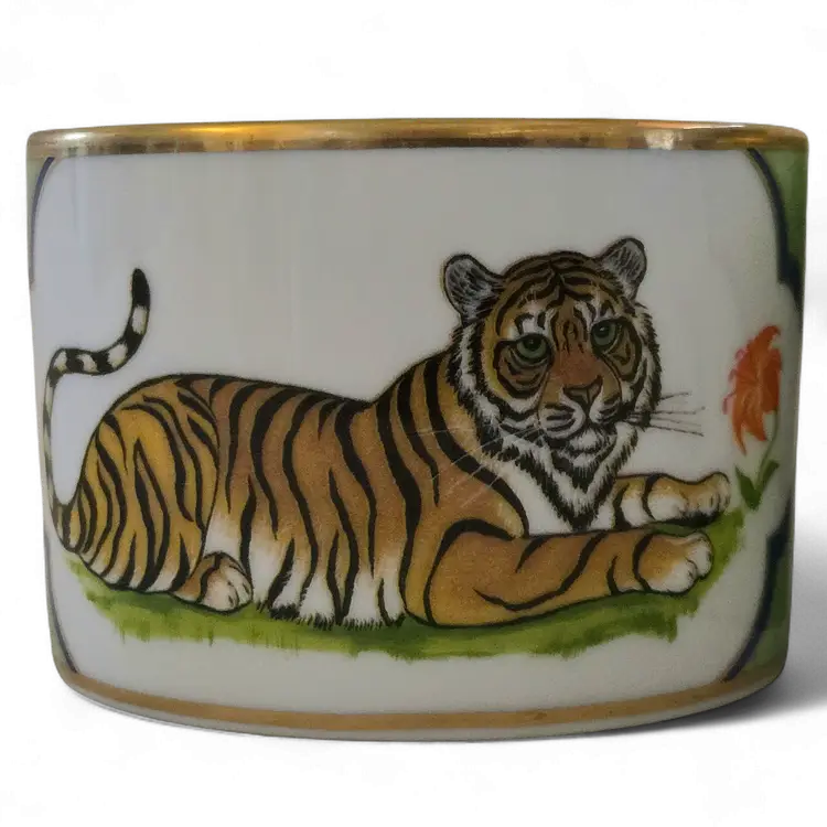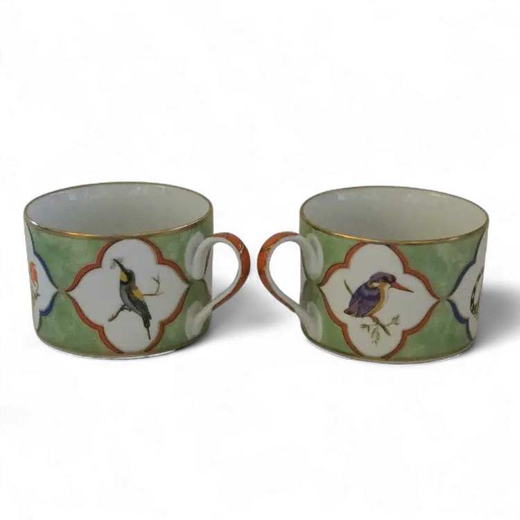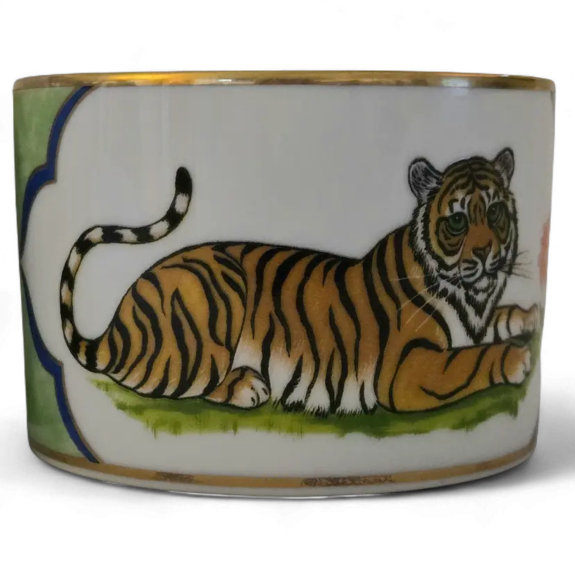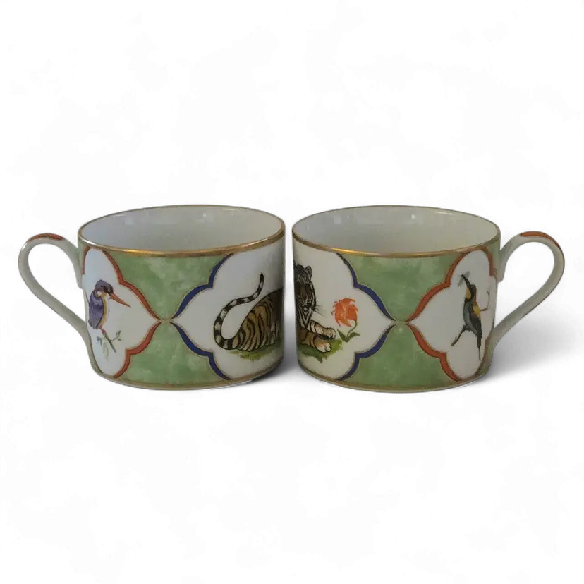 Lynn Chase Tiger Raj Coffee Cups 2¼" Tall × 3⅜" Diameter Set of 2 Signed in Glaze. Used with no signs of use, does have some fingerprints from handling, dirt in bottom. Please view all the photos and please ask any questions prior to purchase when possible.