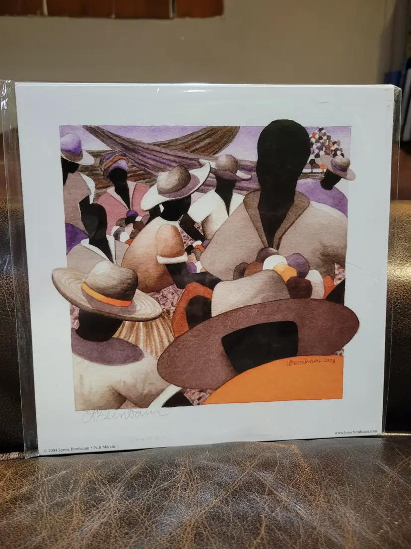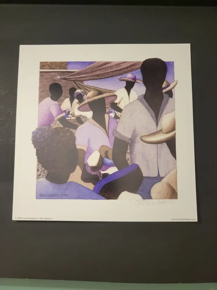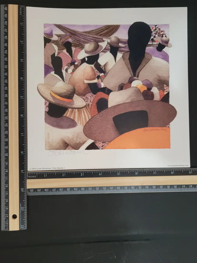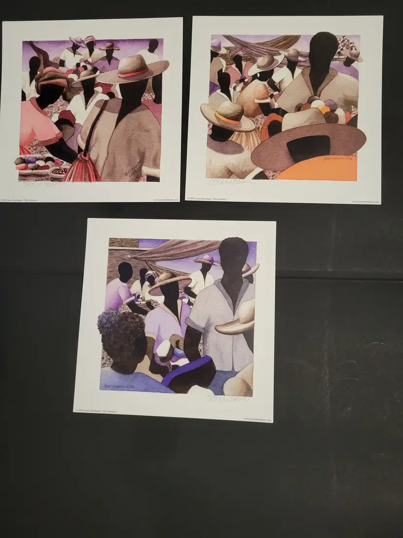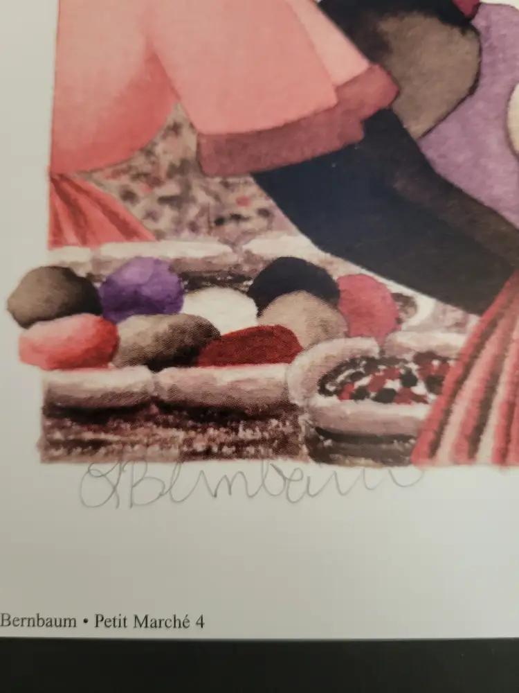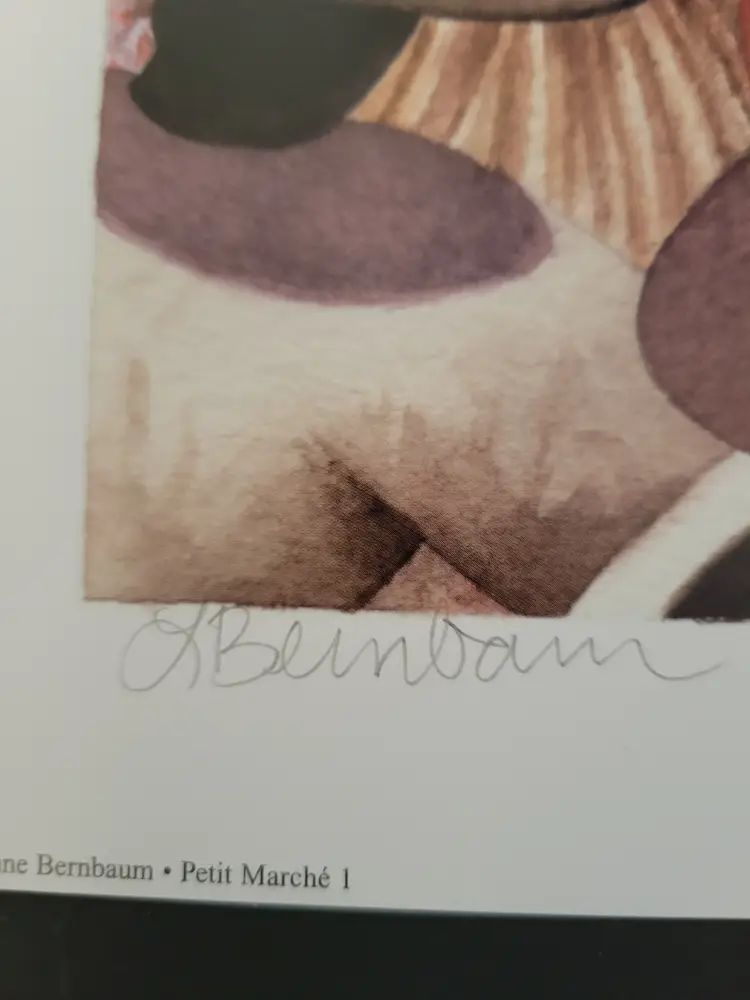 The product is a set of three signed lithographs by artist Lyne Bernbaum, titled "Petit Marche 1,2,4". These medium-sized 9" X 9" prints fall under the category of fine art prints and feature an outsider art style with figures and portraits as the main subject. Created in the 2000s, they are open edition reproductions that are unframed and listed by a dealer or reseller. Each print is signed in pencil, adding an authentic touch to the artwork.