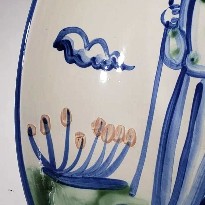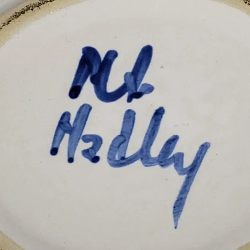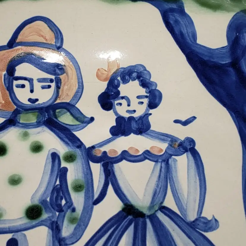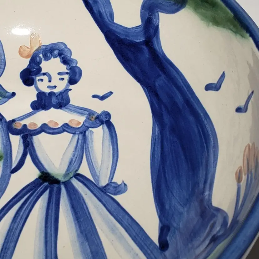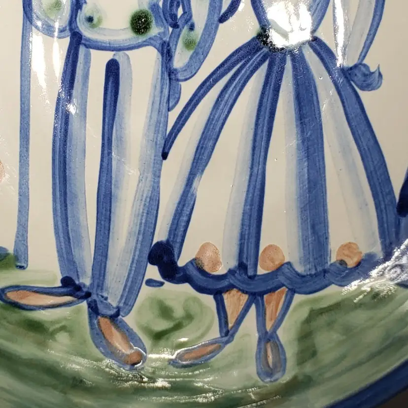 M A Hadley Pottery Farmer and Wife Country Scene 11" Large Pasta Serving Bowl Discontinued Hand Painted Artist Signed: M A Hadley Measures: 11" x 11" x 3.25" Pre-owned, but like new. No chips or cracks.
