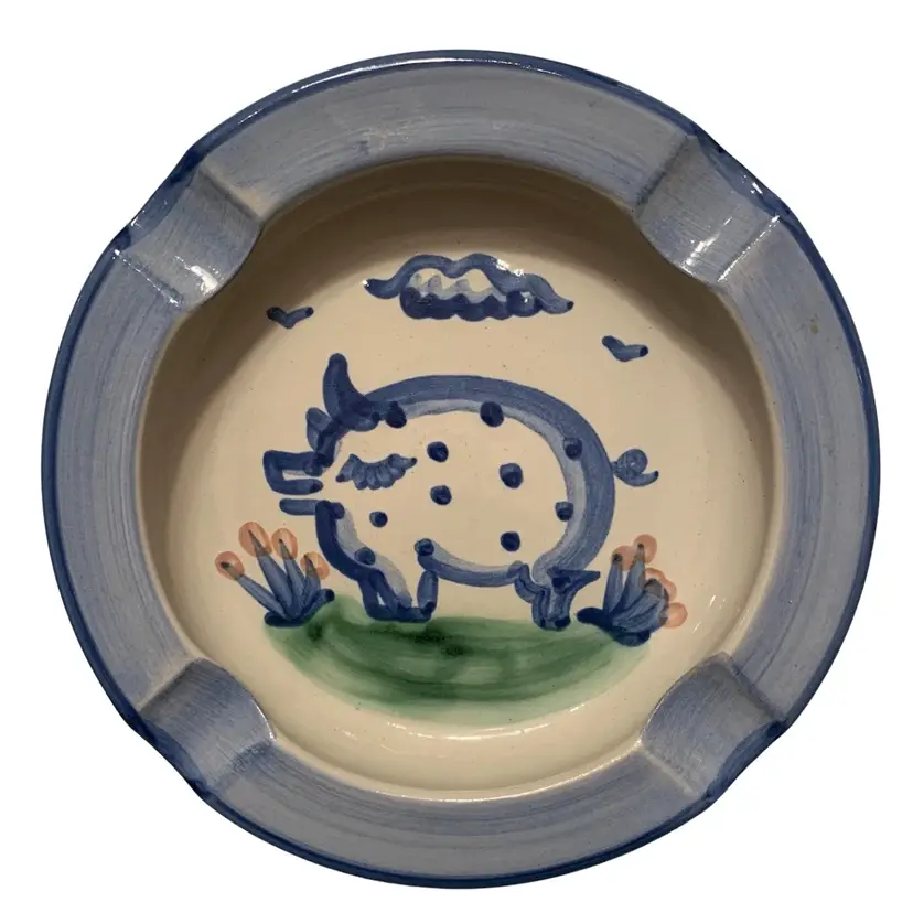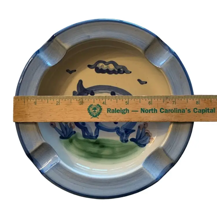 This heavy ashtray has the hand painted pig art. In good condition with no chips, cracks, or repairs. See all photos for details and measurements. Thanks for checking out my listings.