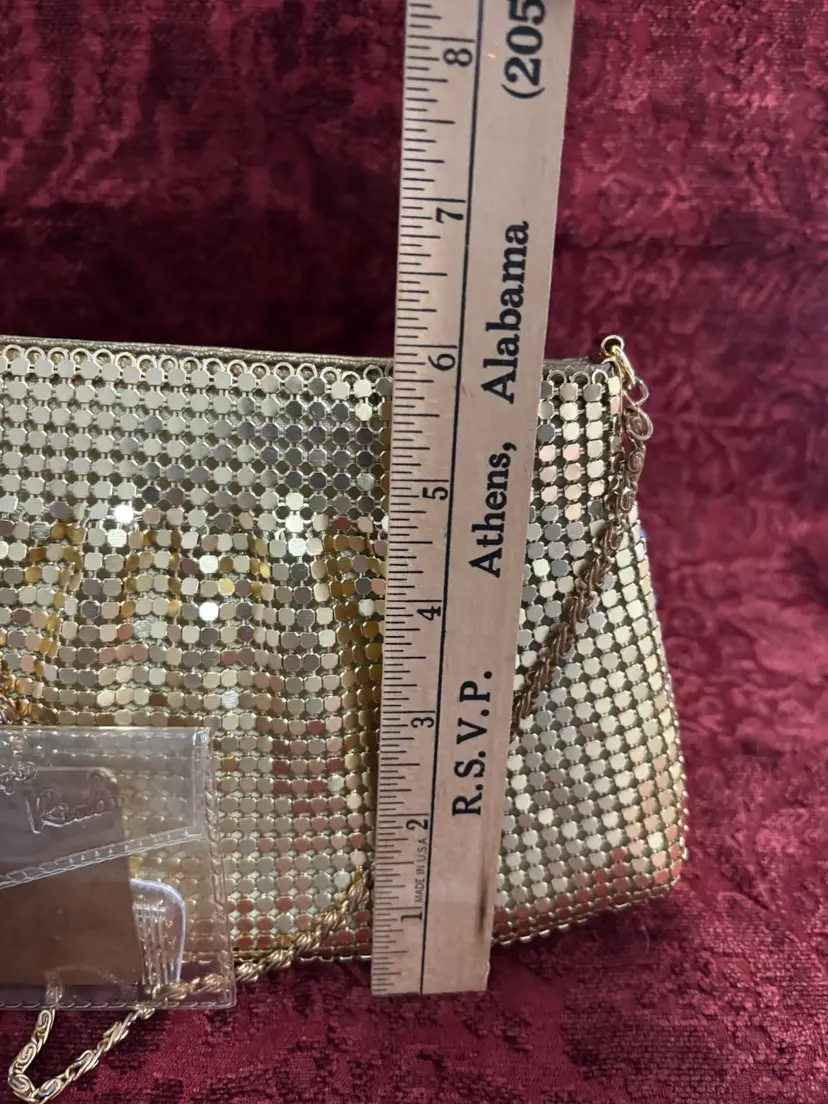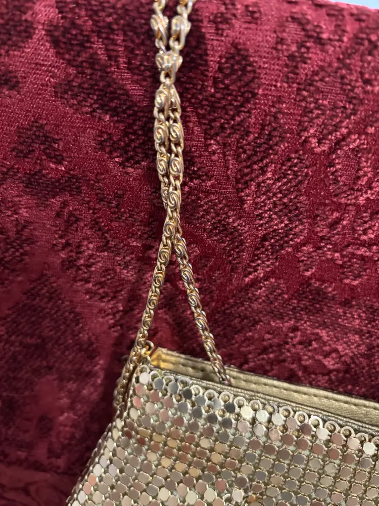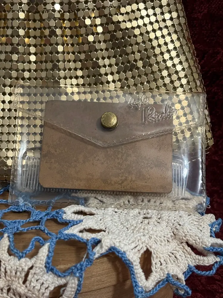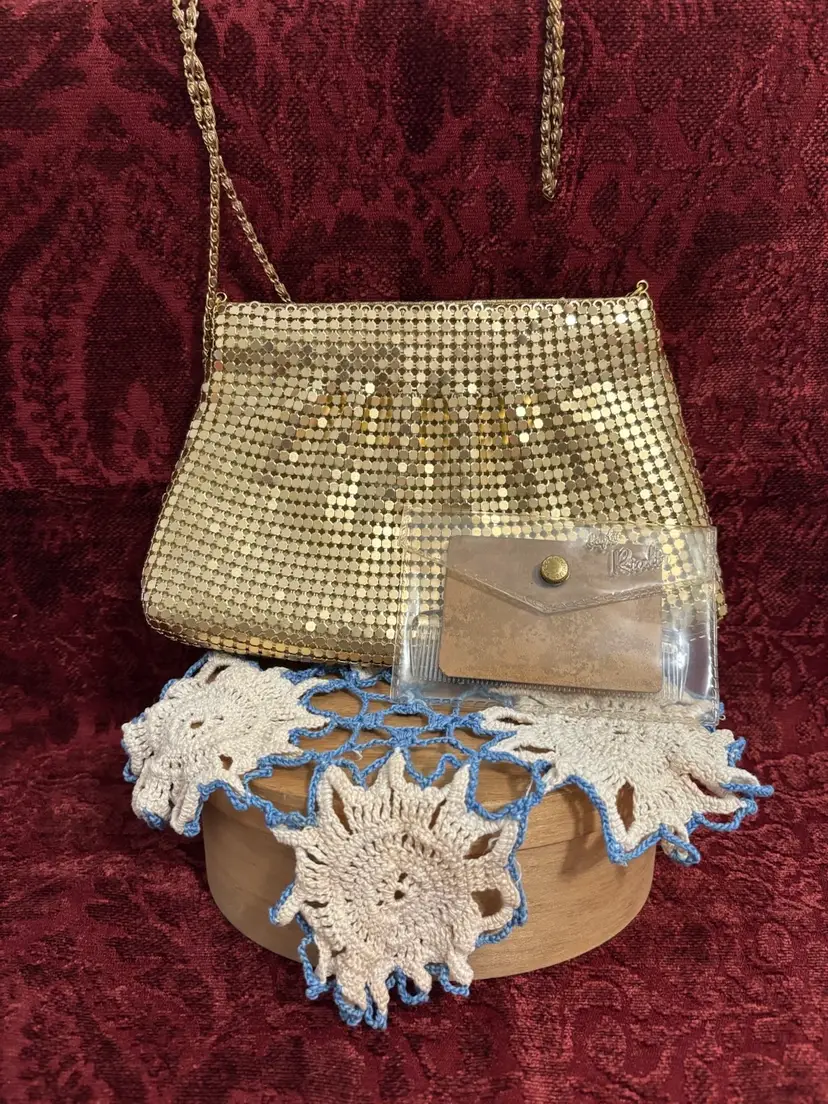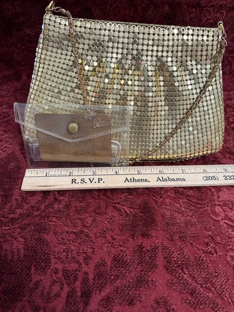 Gold mesh bags by Warren Reed and Rialto mirror and comb set from Rialto. Both in ver nice condition. Purse is clean and has chain shoulder strap.