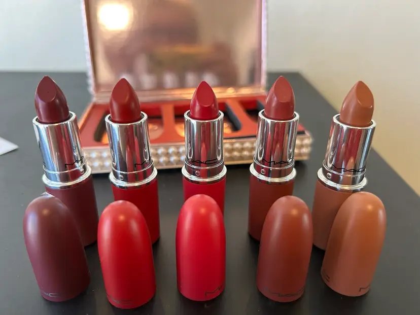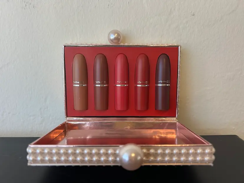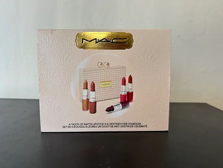 Mac limited edition, a taste of Matt lipstick x5 distant for stardom.. Colors are Moscow mule, sip happens, taste of romance, the perfect bow, make it merry.