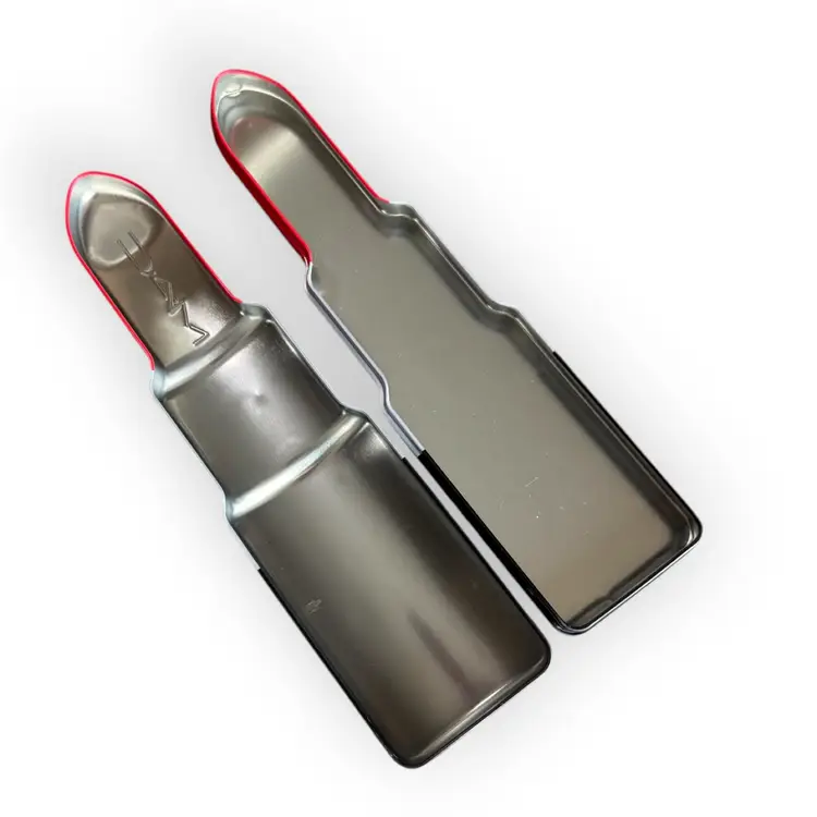 Celebrating the original Retro Matte Ruby Woo shade of MAC lipsticks, this limited edition promotional tin is perfect for holding lipsticks or whatever you want! The tin is 11” tall, 2.5” wide at the base, and approximately 1.5” deep. There is a small but noticeable ding on the front of the tin and a small dent on the tip of the back of the lipstick. There is also a scuffed area on the back. Last pictures show all in detail. NOTE THAT THE TIN IS EMPTY, NO MAC PRODUCT IS INCLUDED.