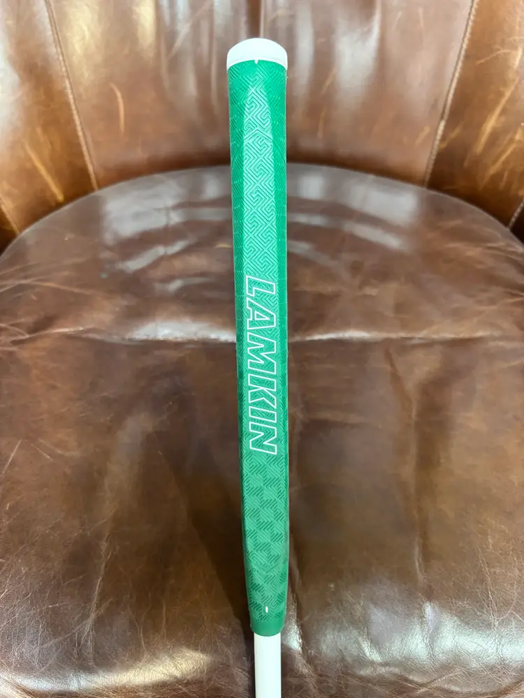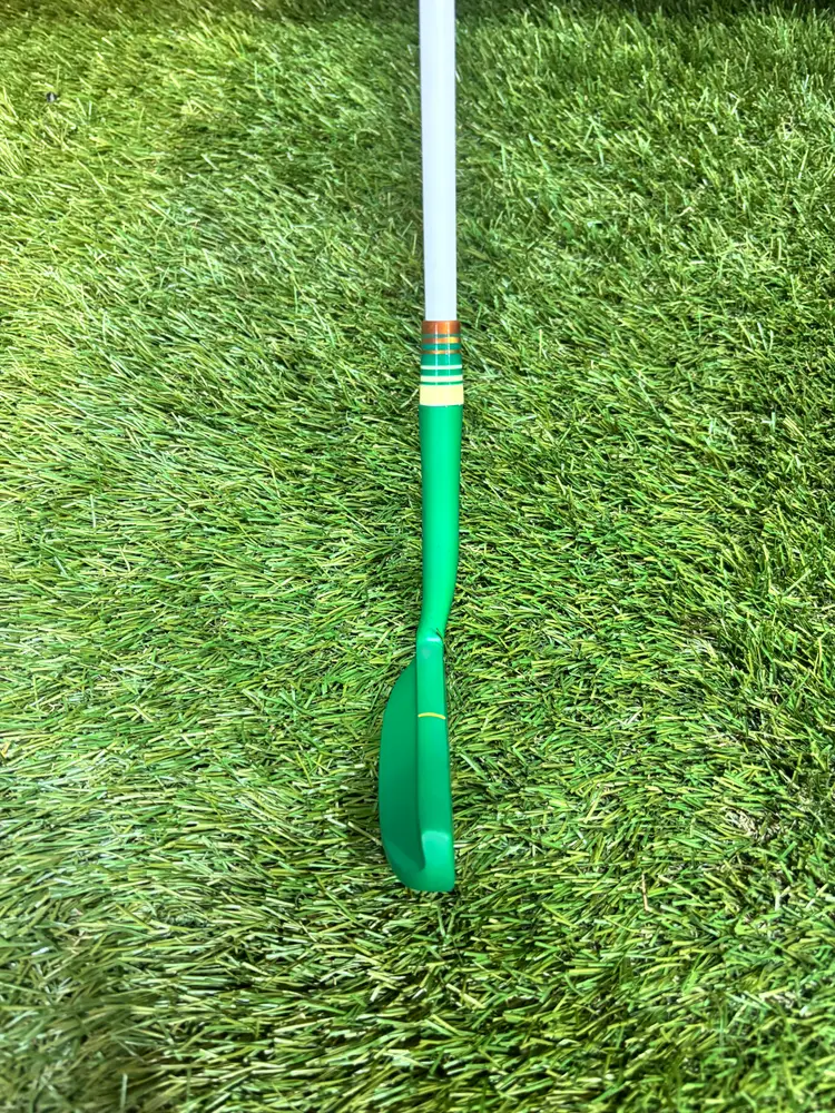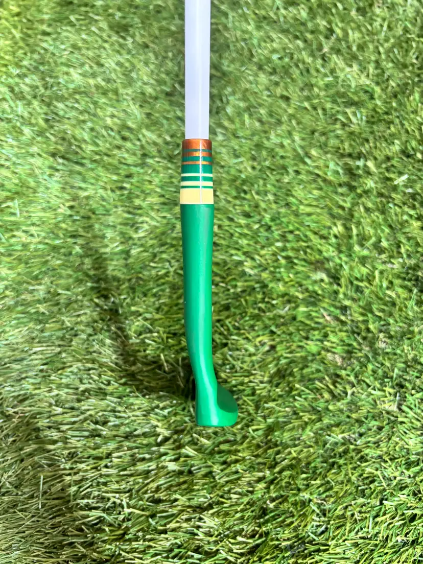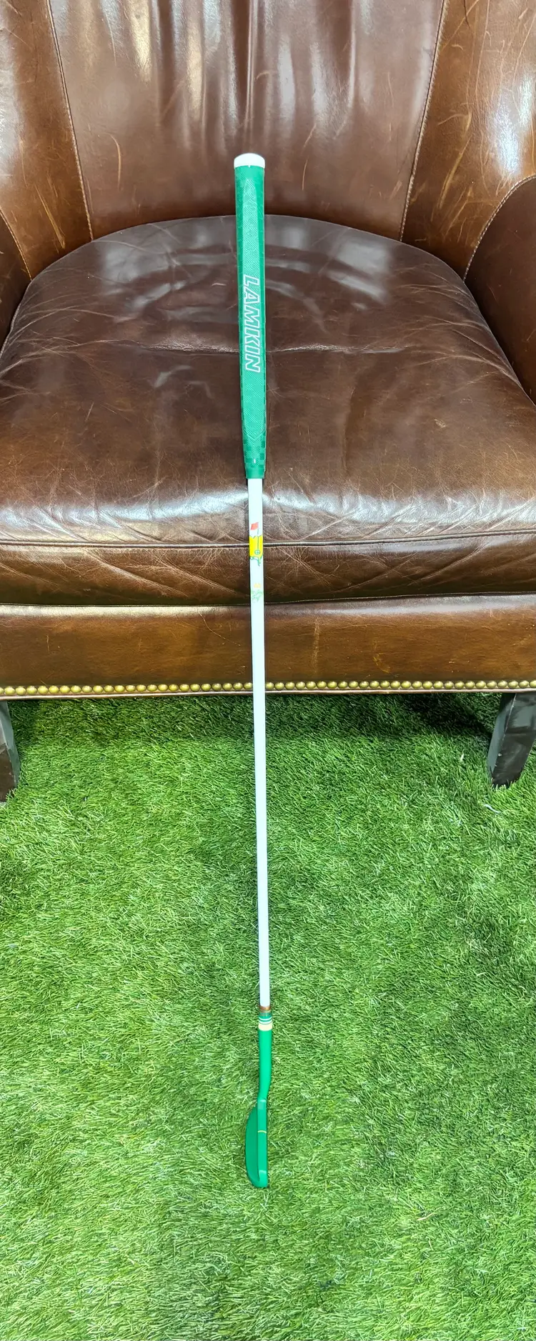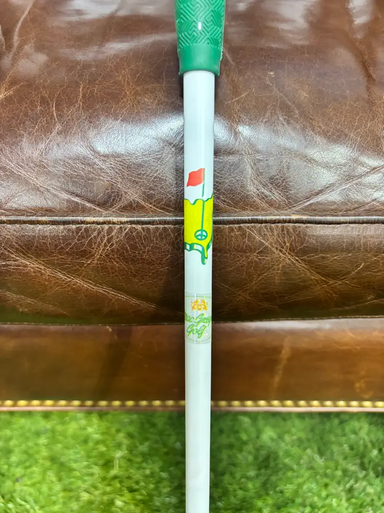 Length: 35" Model: MacGregor IM5 Iron Master Finish: Augusta Green w/ Yellow and Red accent paintfill Shaft: Custom white shaft with detailed Masters graphics, Augusta USA map & peace sign Ferrule: Classic striped green/yellow/orange retro ringed ferrule Grip: Green Lamkin Sink Fit Straight – clean and comfortable 🧢 Headcover: