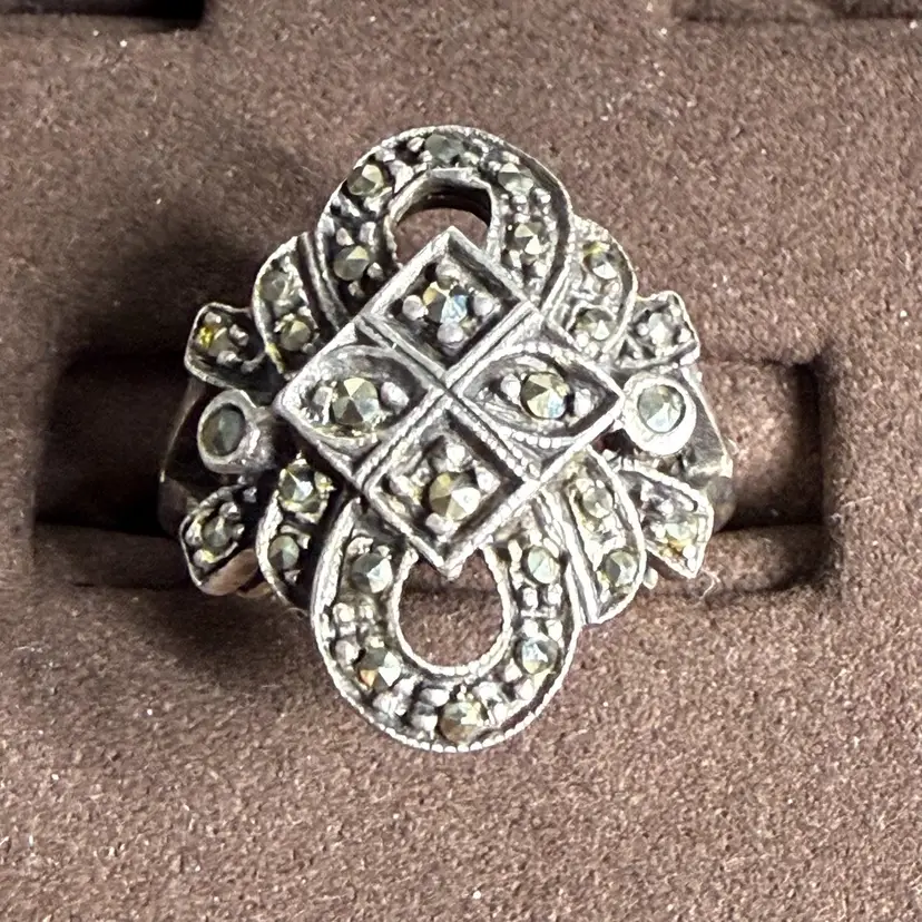Machasite Art Deco Inspired 925 Sterling Silver Ring Size 7