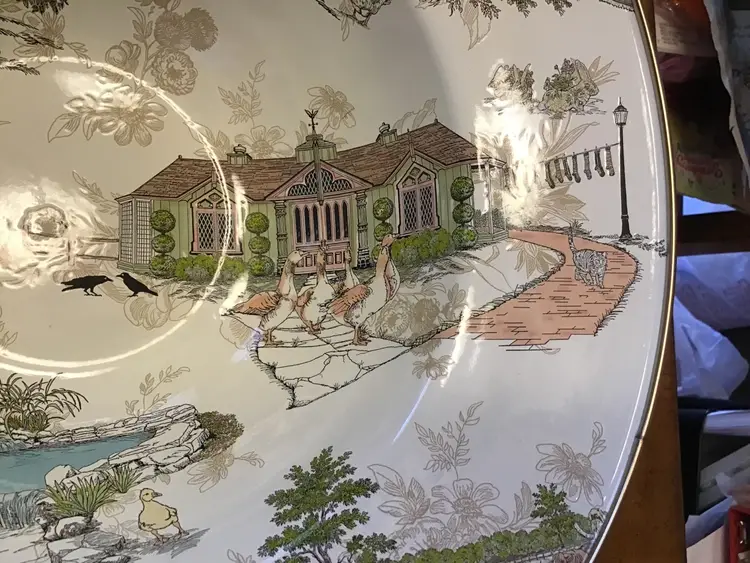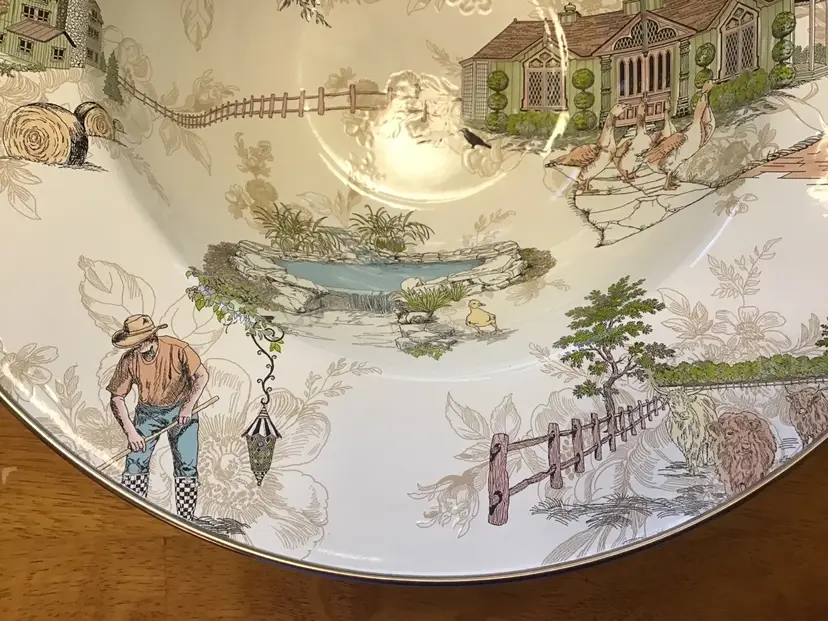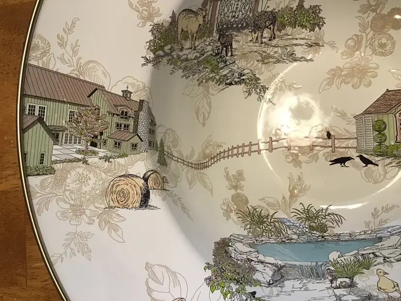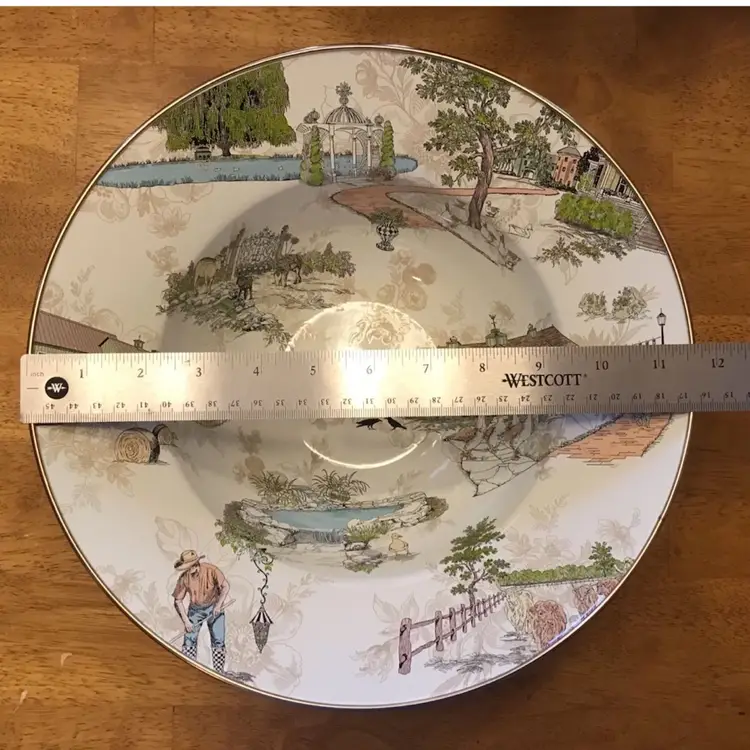 Serving bowl in in great condition but does have some minimal wear. See pictures for details. Size is in the pictures. See all pictures as they are an important part of the description.