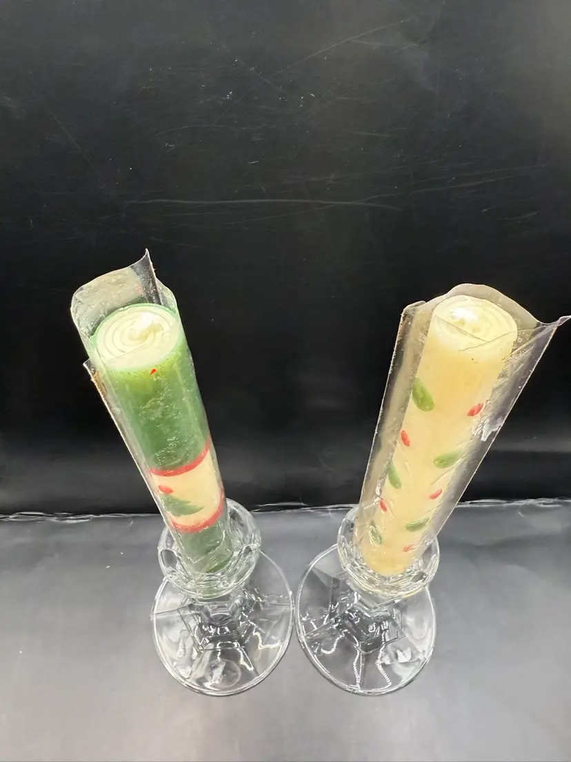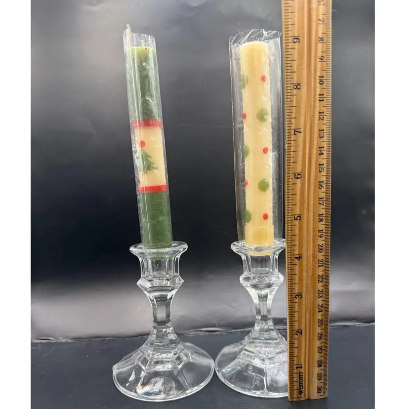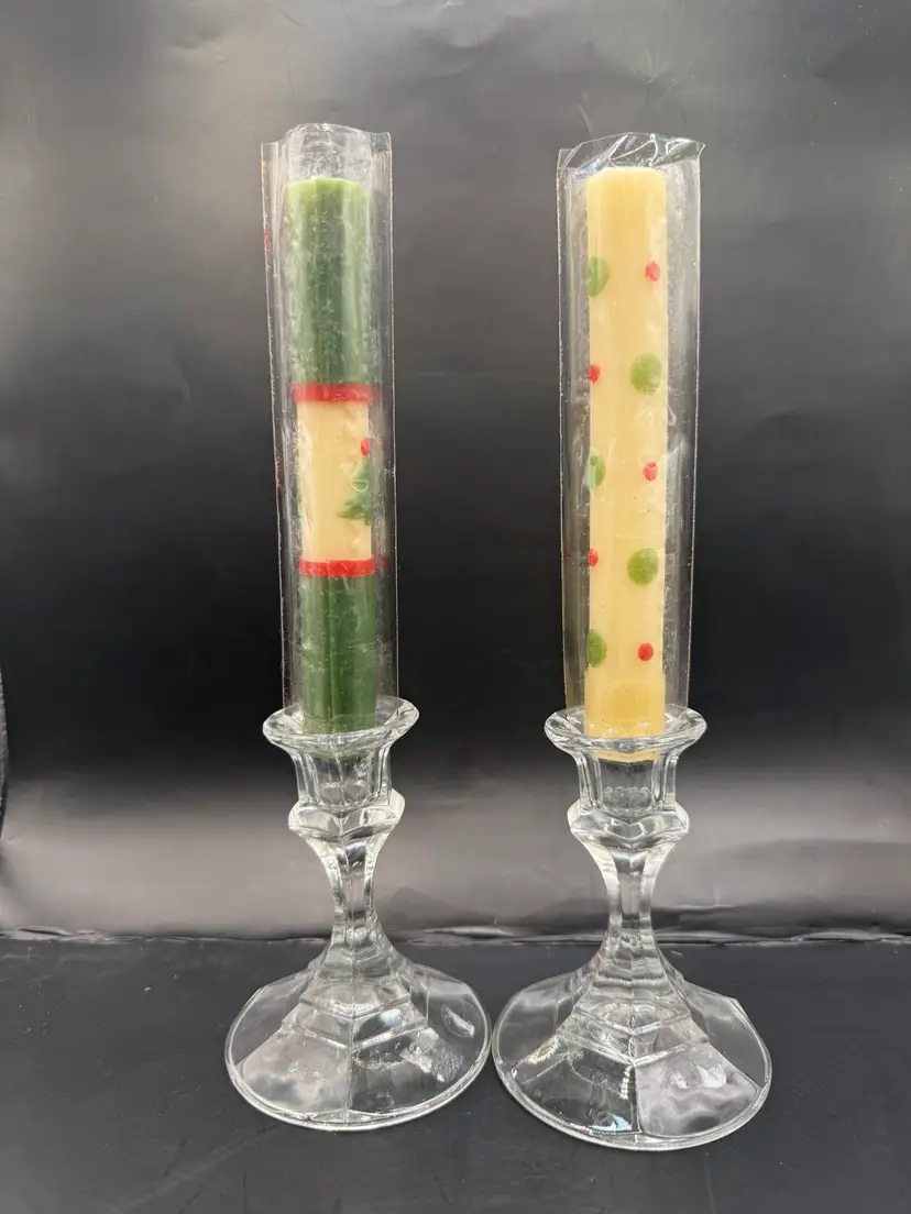 Very good vintage condition in original plastic. One candle holder has small chip on rim.