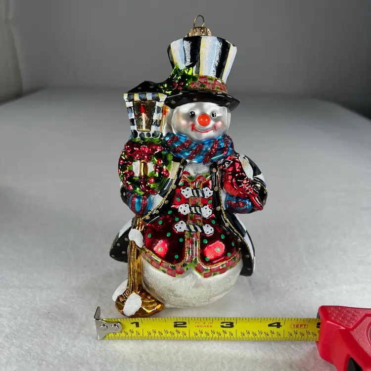 Add a touch of elegance and whimsy to your holiday decor with the Mackenzie Childs Jolly Snowman Christmas Ornament. This charming ornament, part of the esteemed MacKenzie-Childs Ornaments collection, features a classic snowman design that's sure to delight guests and family members alike.