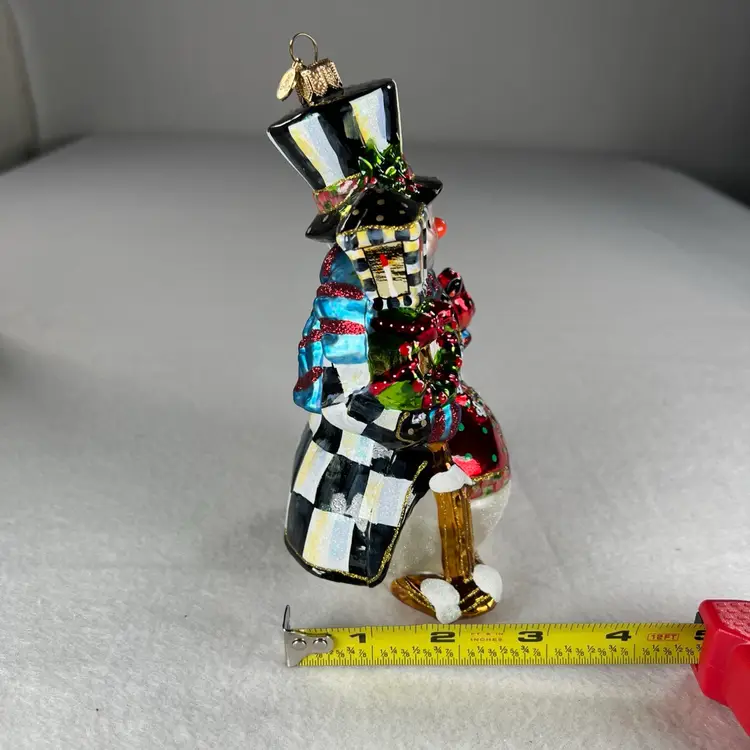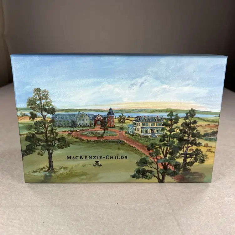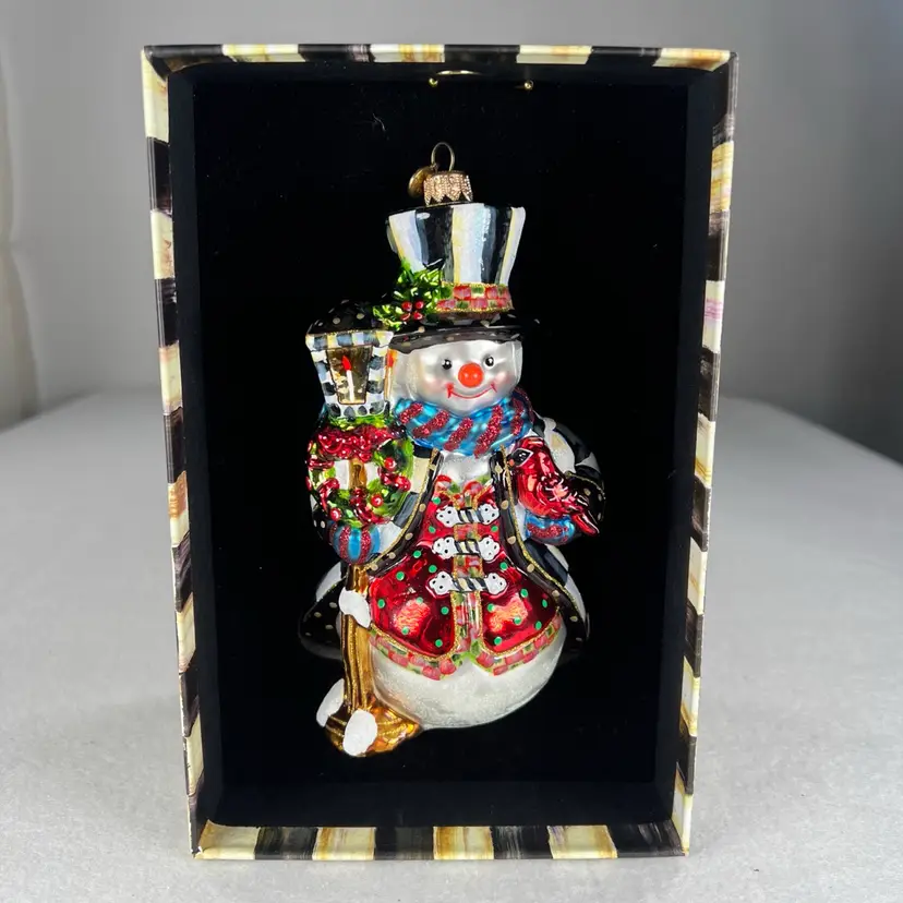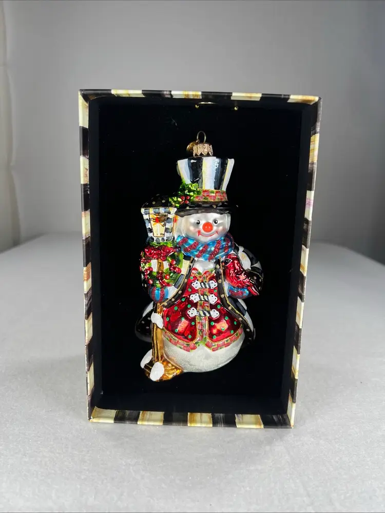 Crafted with the high-quality standards you expect from MacKenzie-Childs, this ornament comes complete in its original gift box, making it a perfect present for the holiday season or a collector's item. Its vintage appeal brings a nostalgic flair to your Christmas tree, celebrating the festive spirit with timeless style.