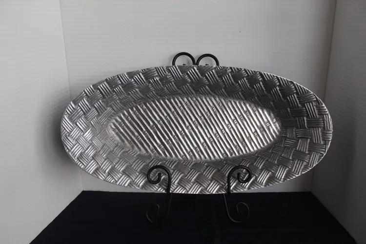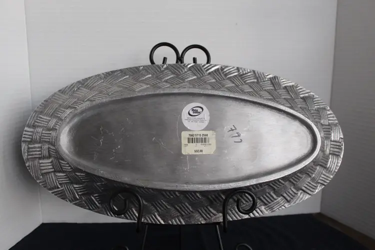 Add a touch of elegance to your serving routine with this beautiful pewter basket weave oval bread serving tray from Macy's The Cellar collection. Perfect for all occasions, this medium-sized tray has one compartment with a diameter of 7 inches and a length of 16 inches. It features a unique weave pattern and an anodized finish that adds to its beauty.