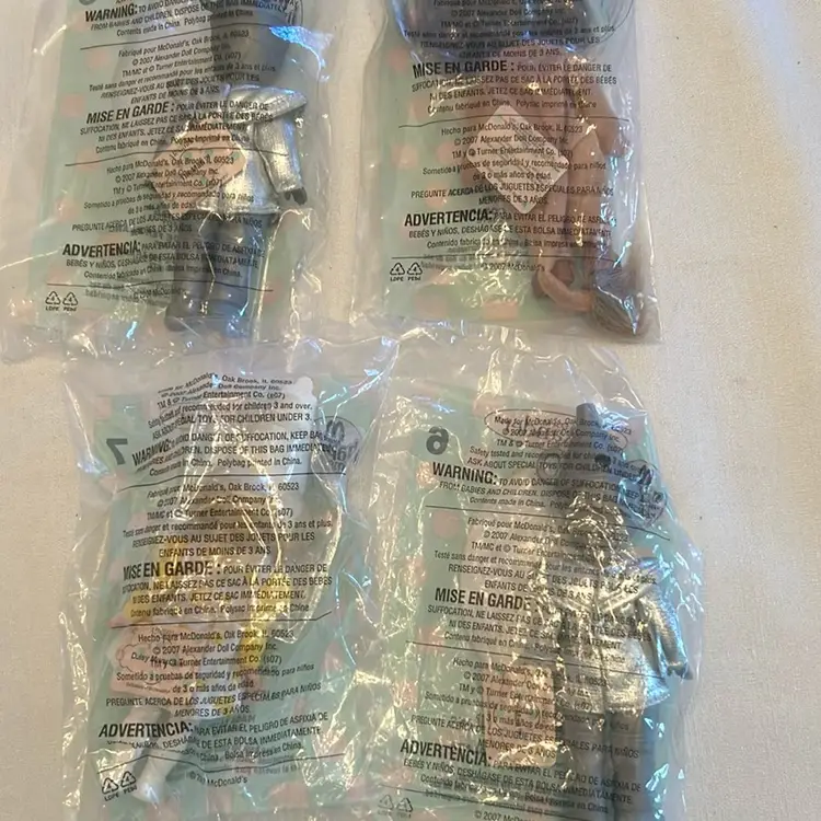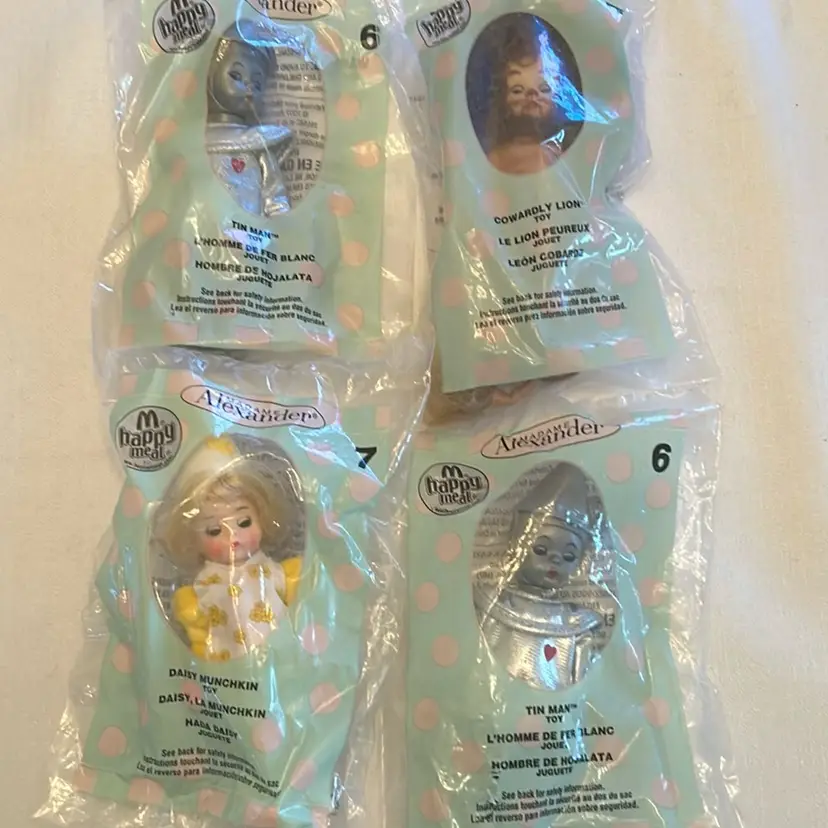 Lot of 4 Madame Alexander dolls. Wizard of Oz 2007 McDonald Happy meal toys. 2 ea Tin Man, Daisy Munchkin, Cowardly Lion.
