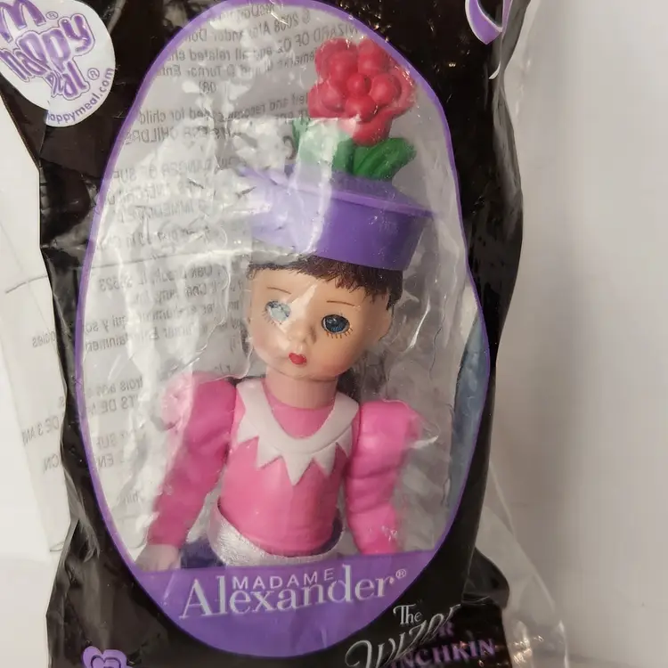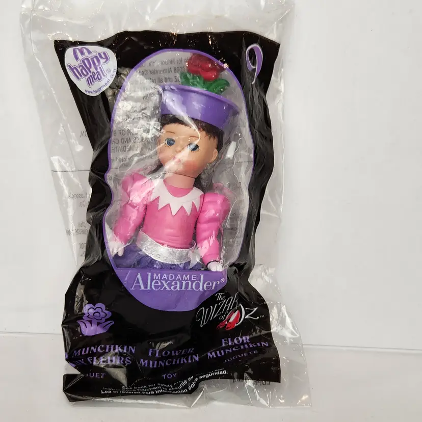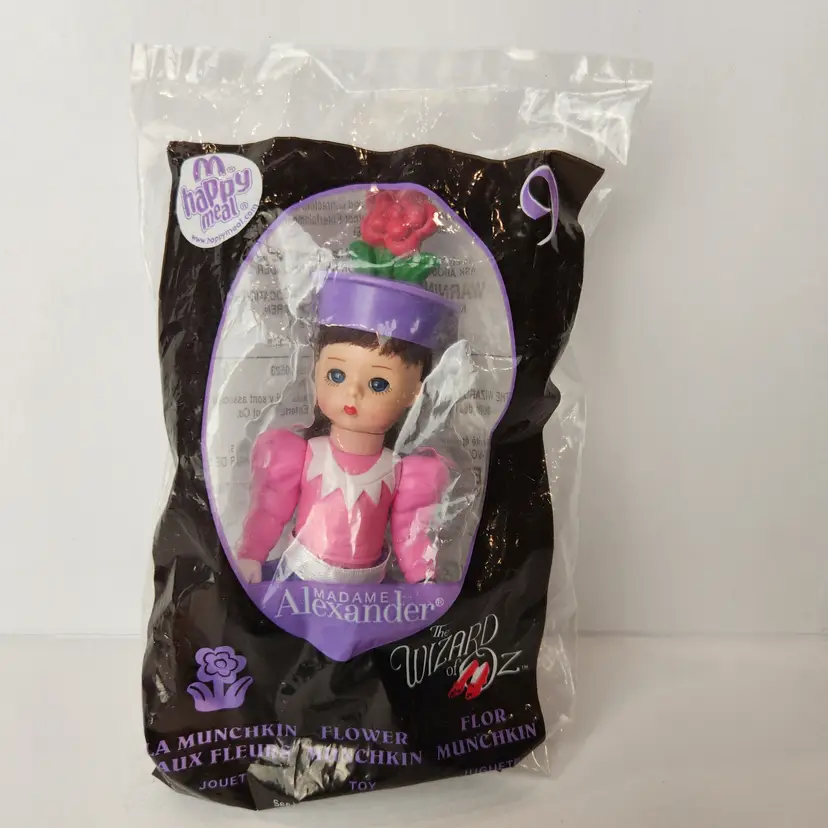 Doll is brand new, sealed Happy Meal Toy from McDonald's. 2008 Madame Alexander #9 Flower Munchkin from the Wizard of Oz collection. Her eyes open and close. Measures approx 6" tall. Smoke free home.